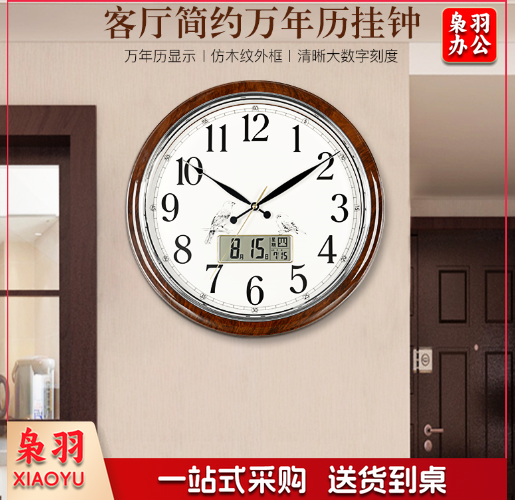 汉时(Hense)18英寸大尺寸挂钟客厅简约日历时钟时尚现代万年历挂表大气石英钟表HW36