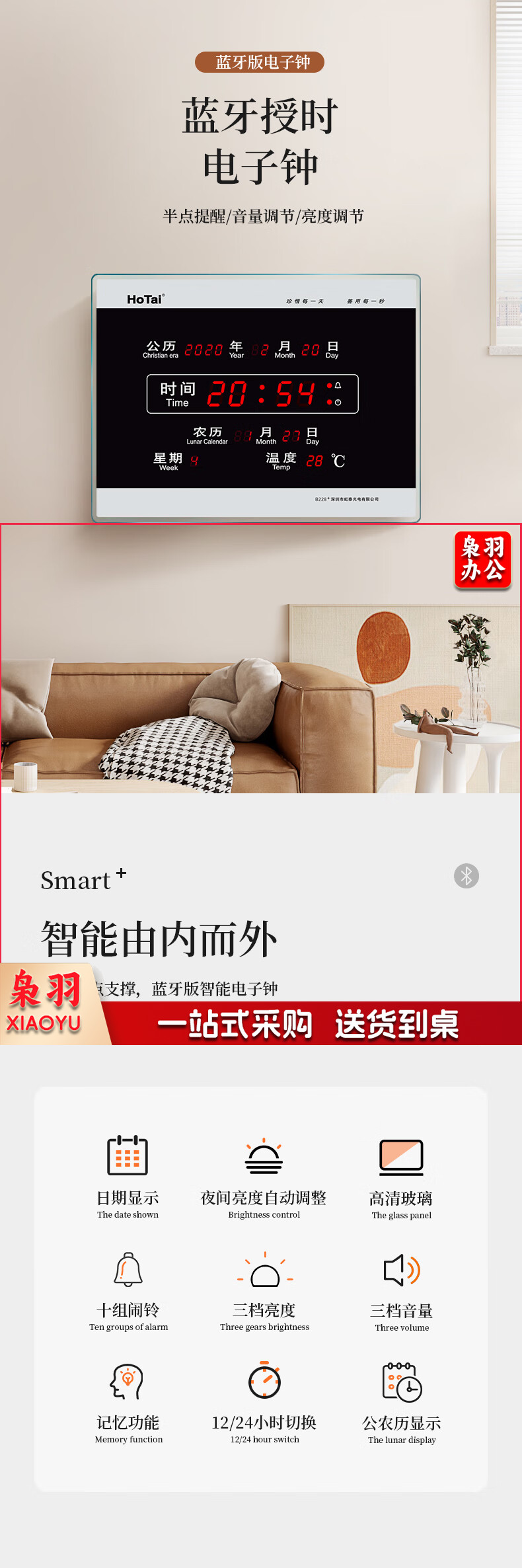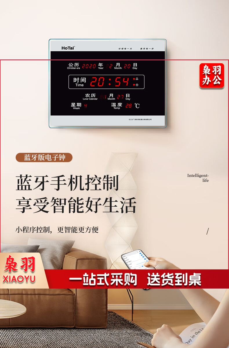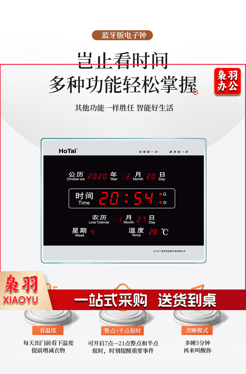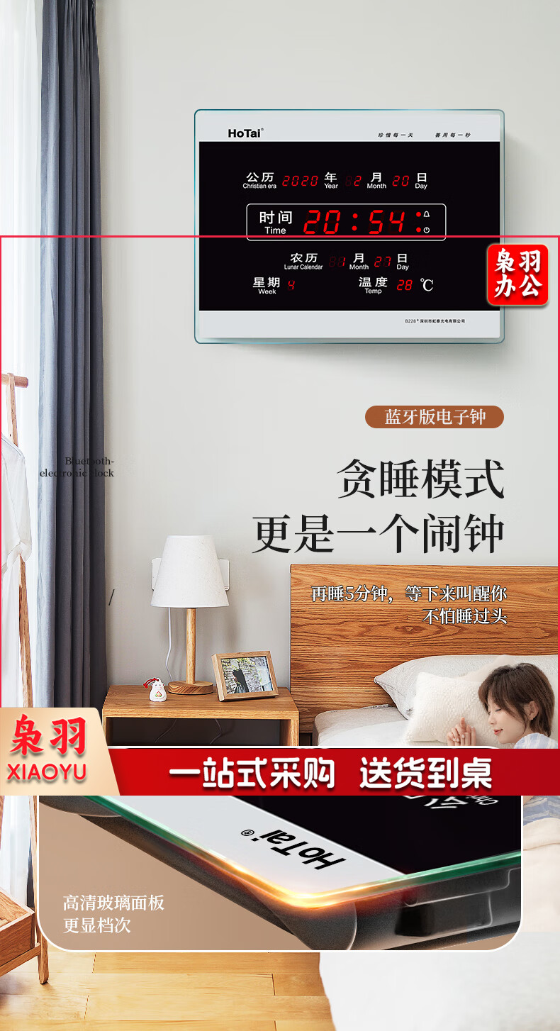 虹光 万年历电子挂钟 B228-09时尚黑蓝牙
