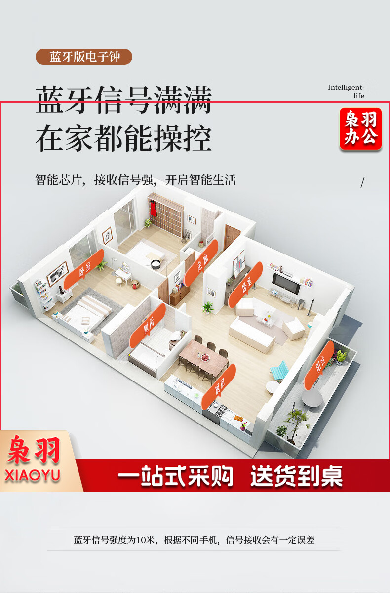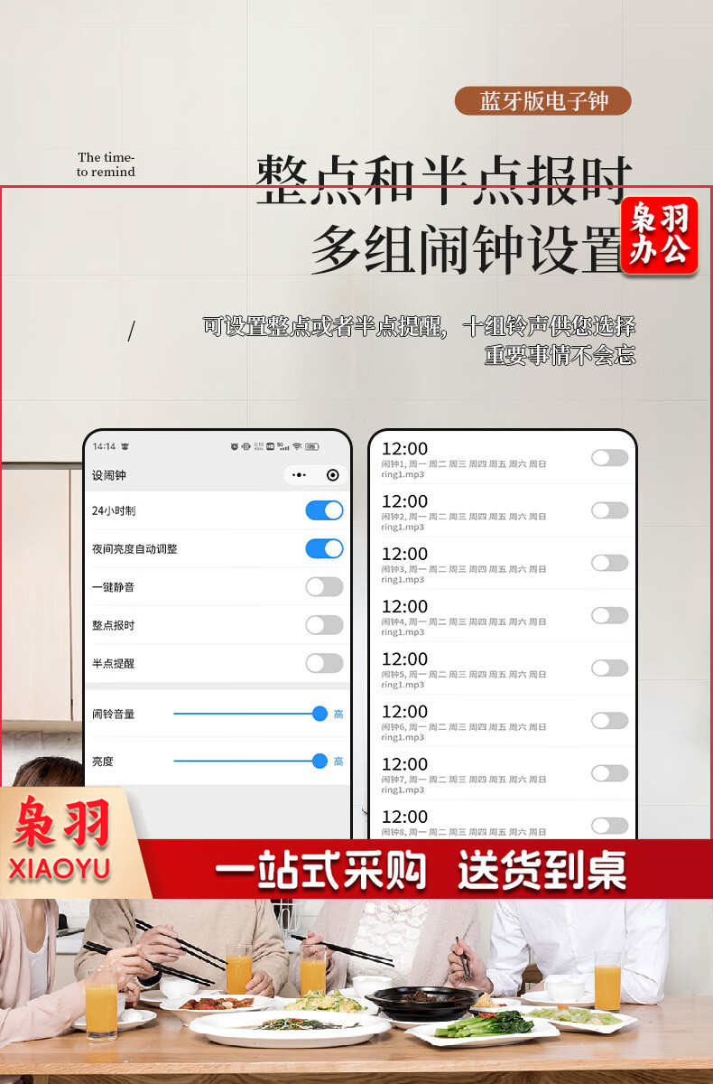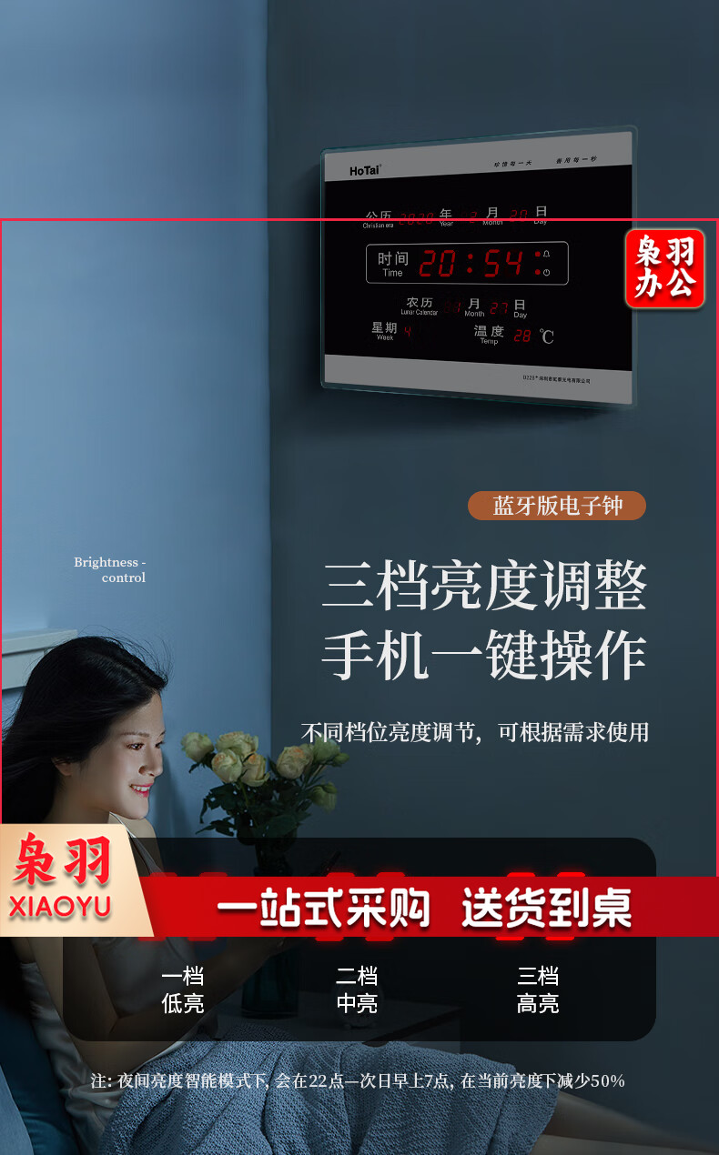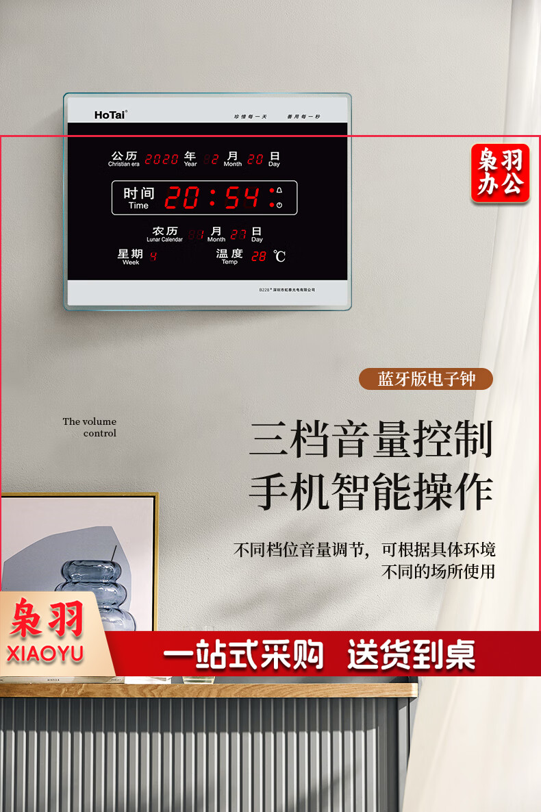 虹光 万年历电子挂钟 B228-09时尚黑蓝牙