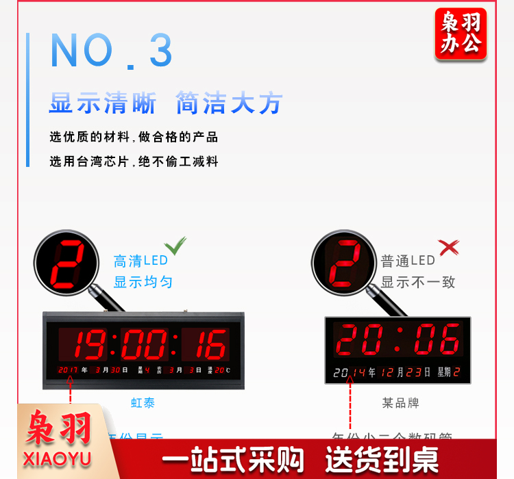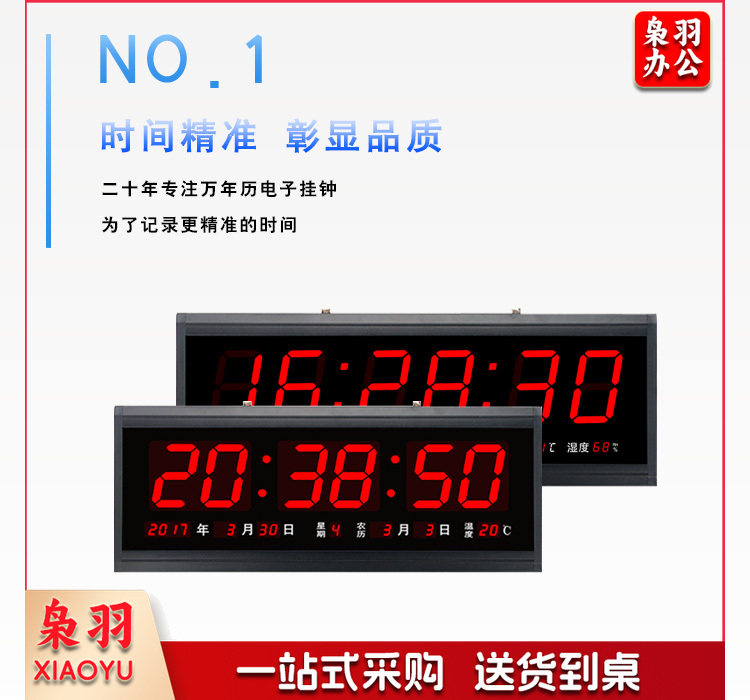 虹泰(HoTai)LED电子万年历挂钟 客厅电子钟夜光时钟 4819 23x68cm 全日历红光