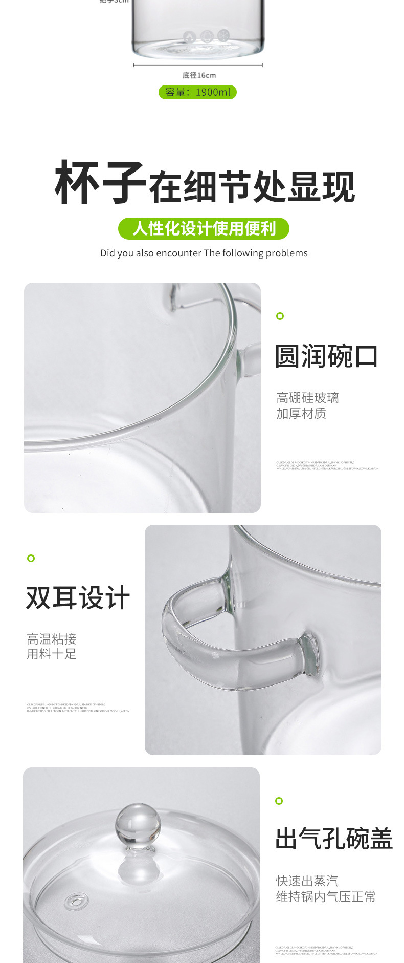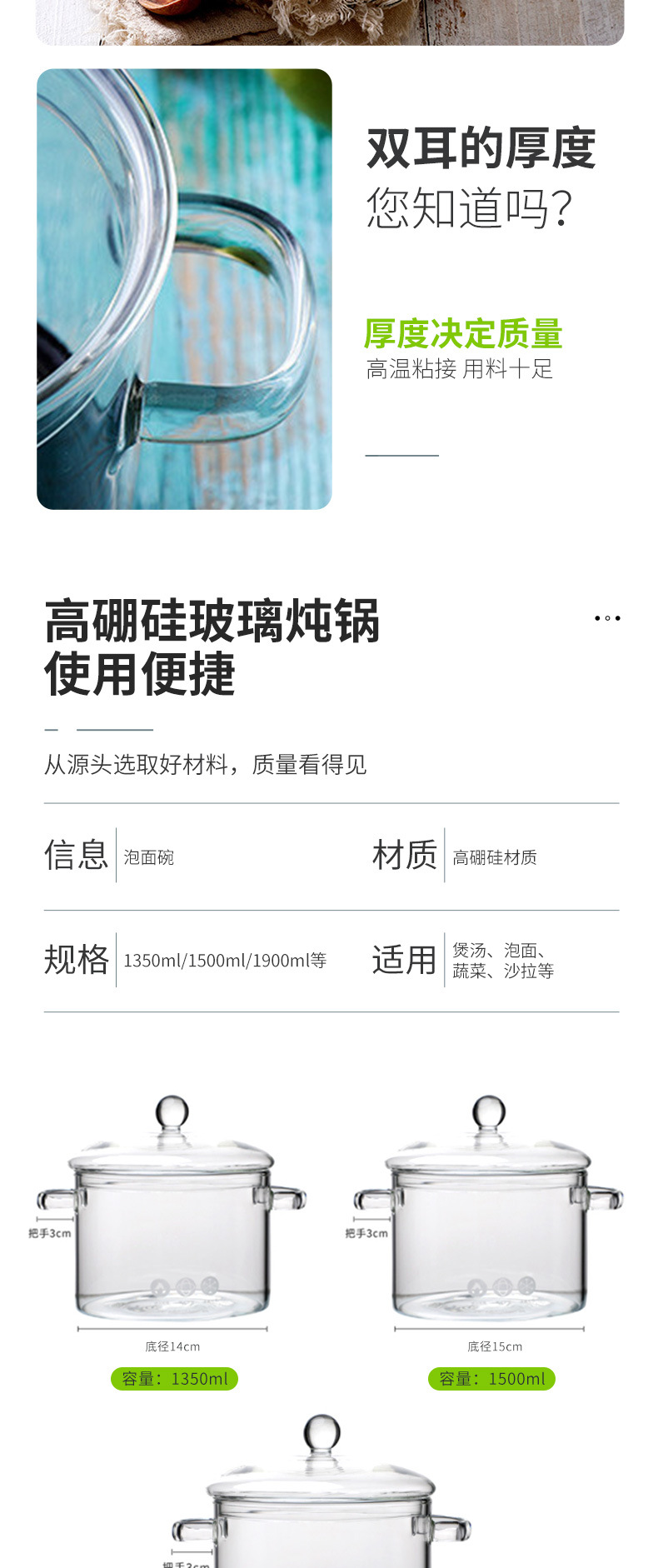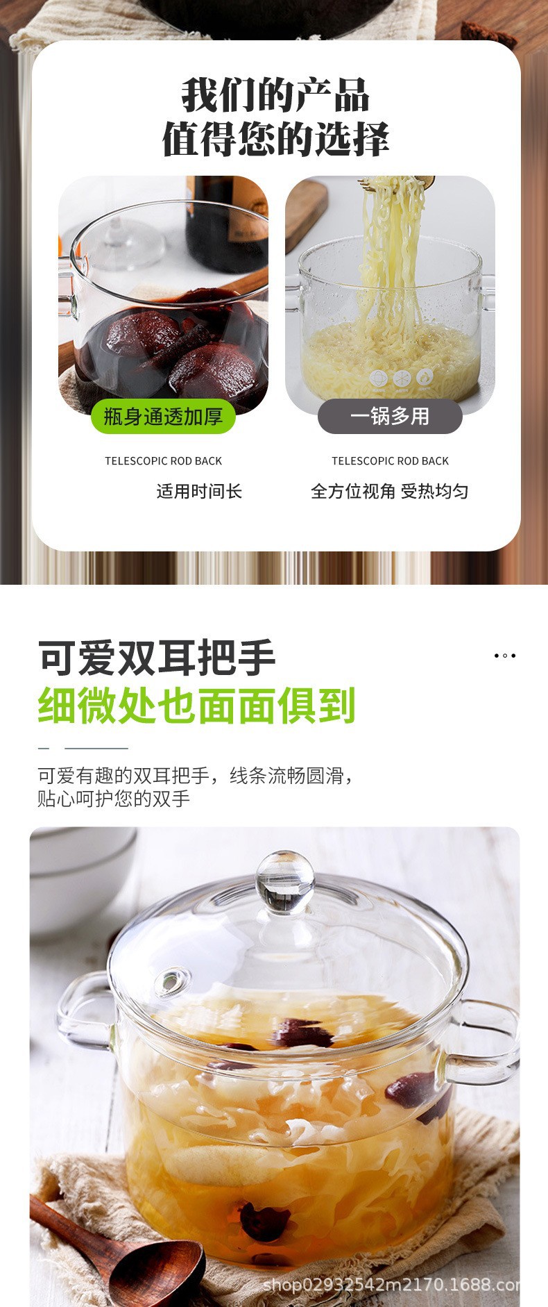 玻璃锅家用锅辅食煲汤炖锅煮面牛奶锅加厚大容量透明煮红酒的锅(1500ml)