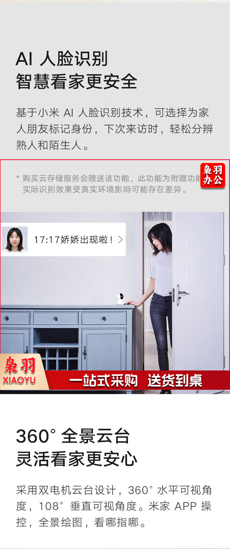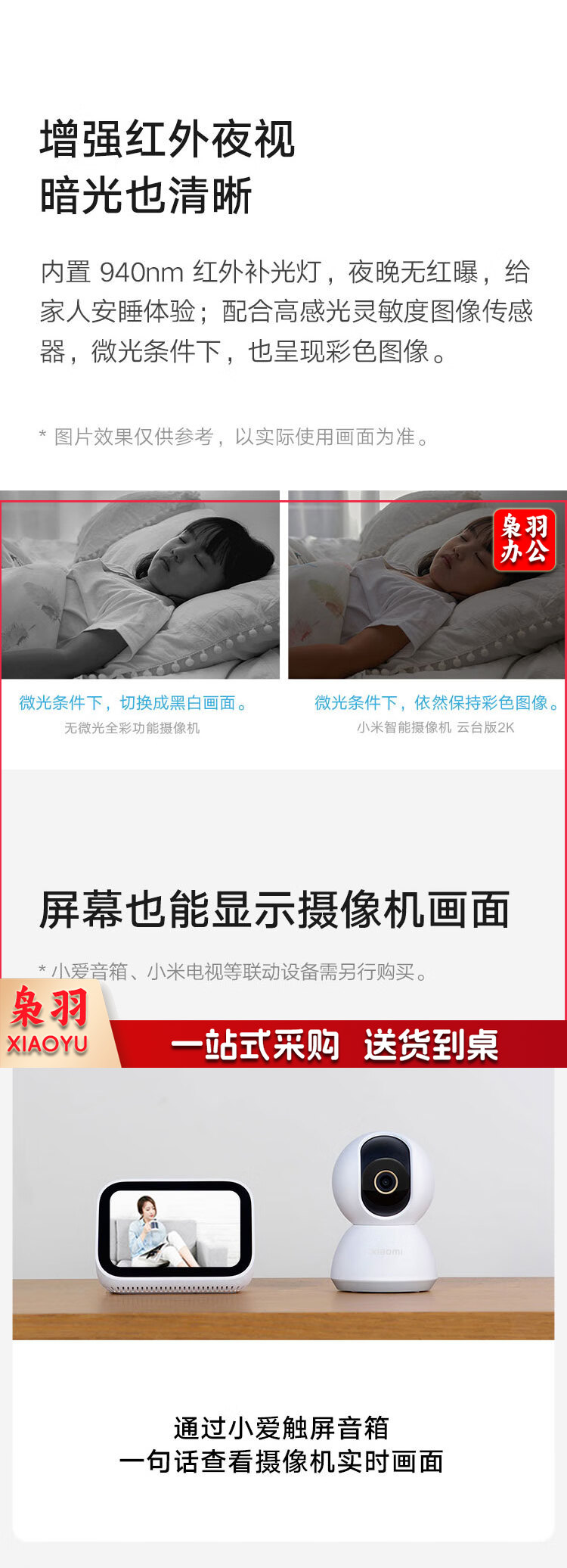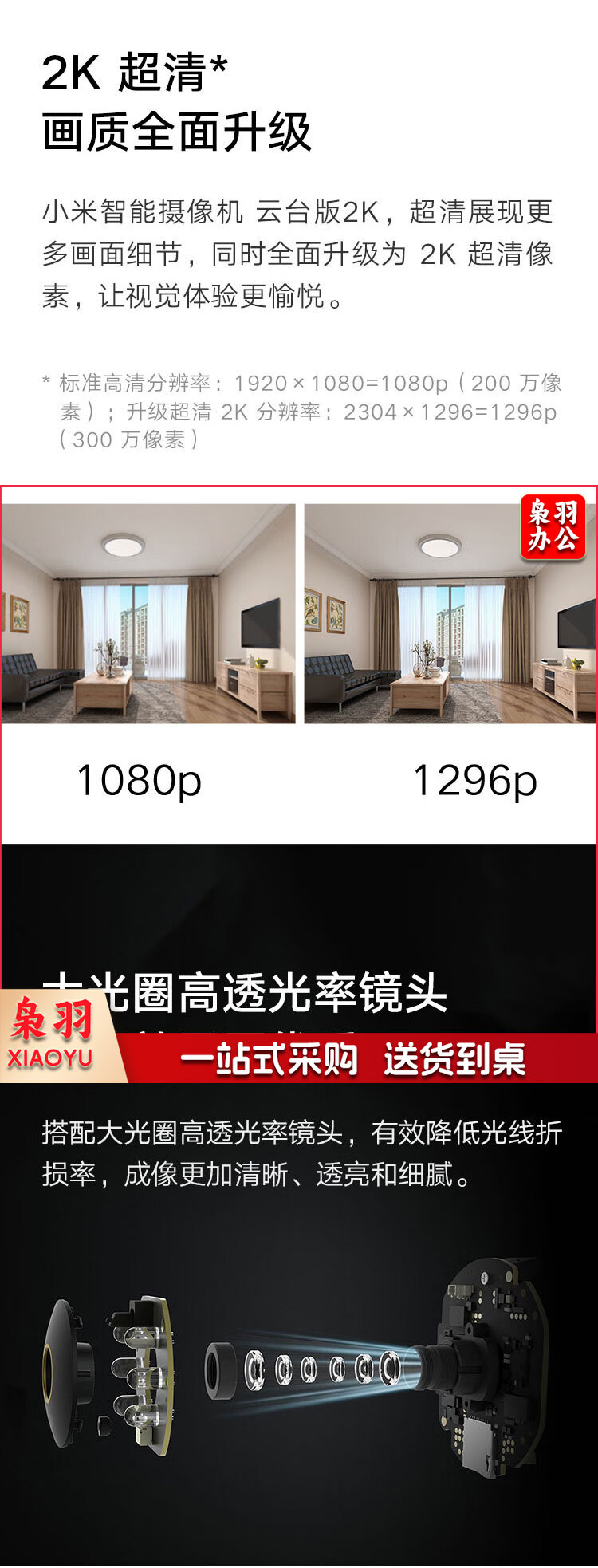 小米摄像头 云台2K版 家用监控器 红外夜视 看家 2K超高清 手机查看 智能摄像机 300W像素升级版