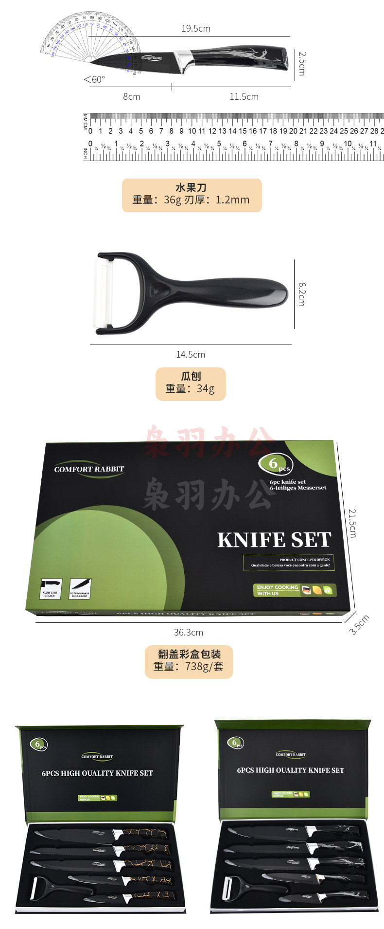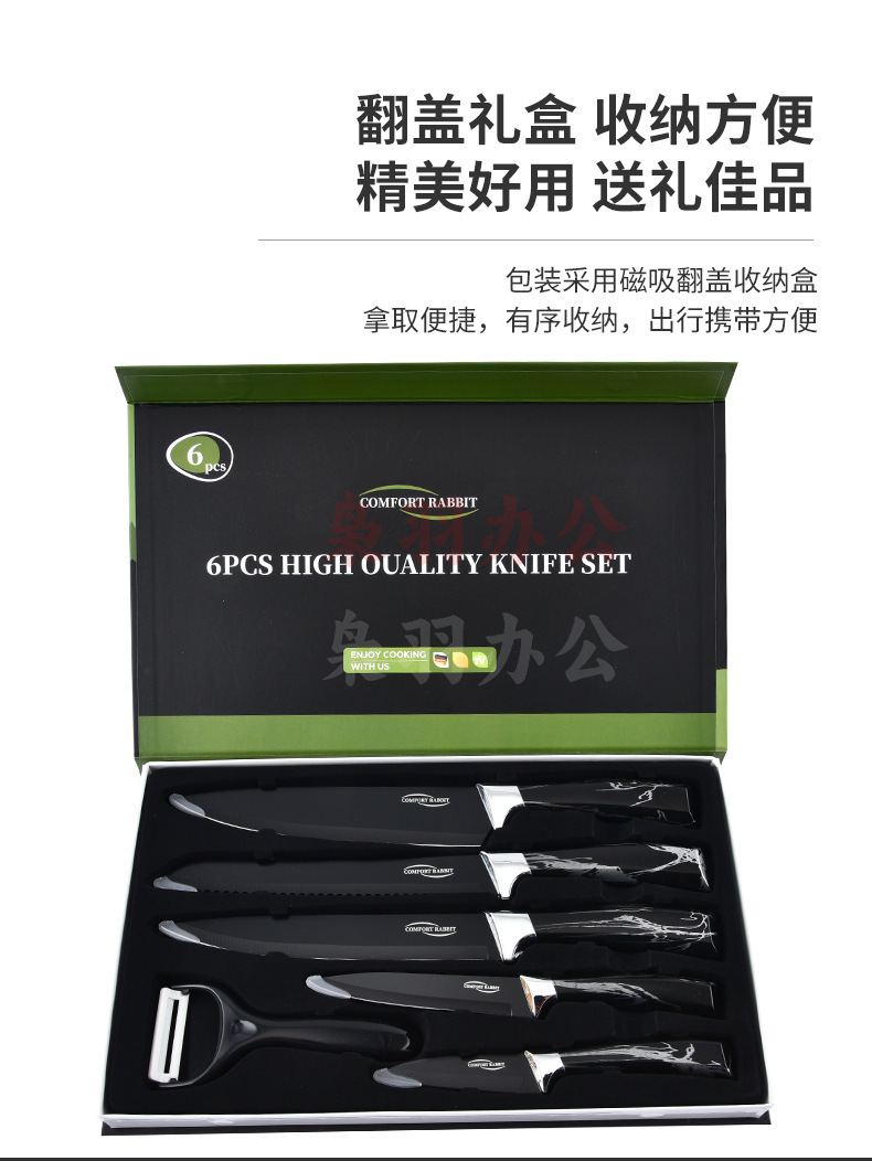 刀具套装 大理石纹不锈钢刀具六件套礼盒装 菜刀水果刀 跨境刀具(金色大理纹6件套)