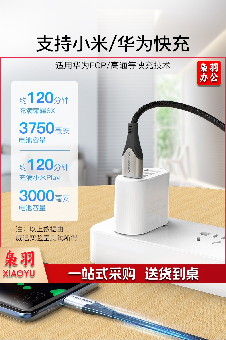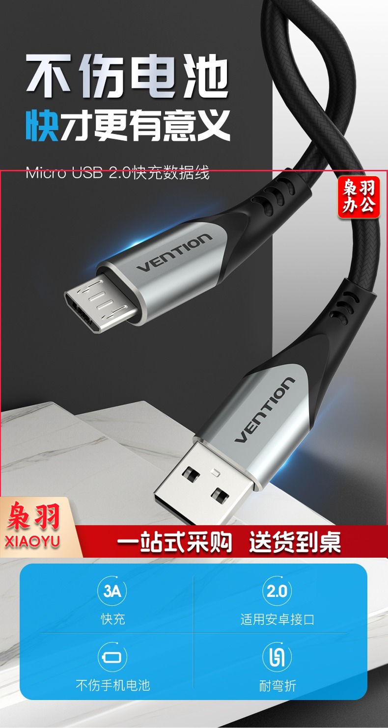 威迅 COAH 手机数据线 安卓数据线充电线3A快充Micro USB车载充电器线转接头 3米