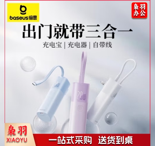 倍思 三合一充电宝充电器自带线 20W双向快充带插头迷你便携能量堆Ai苹果小米华为手机储能户外电源