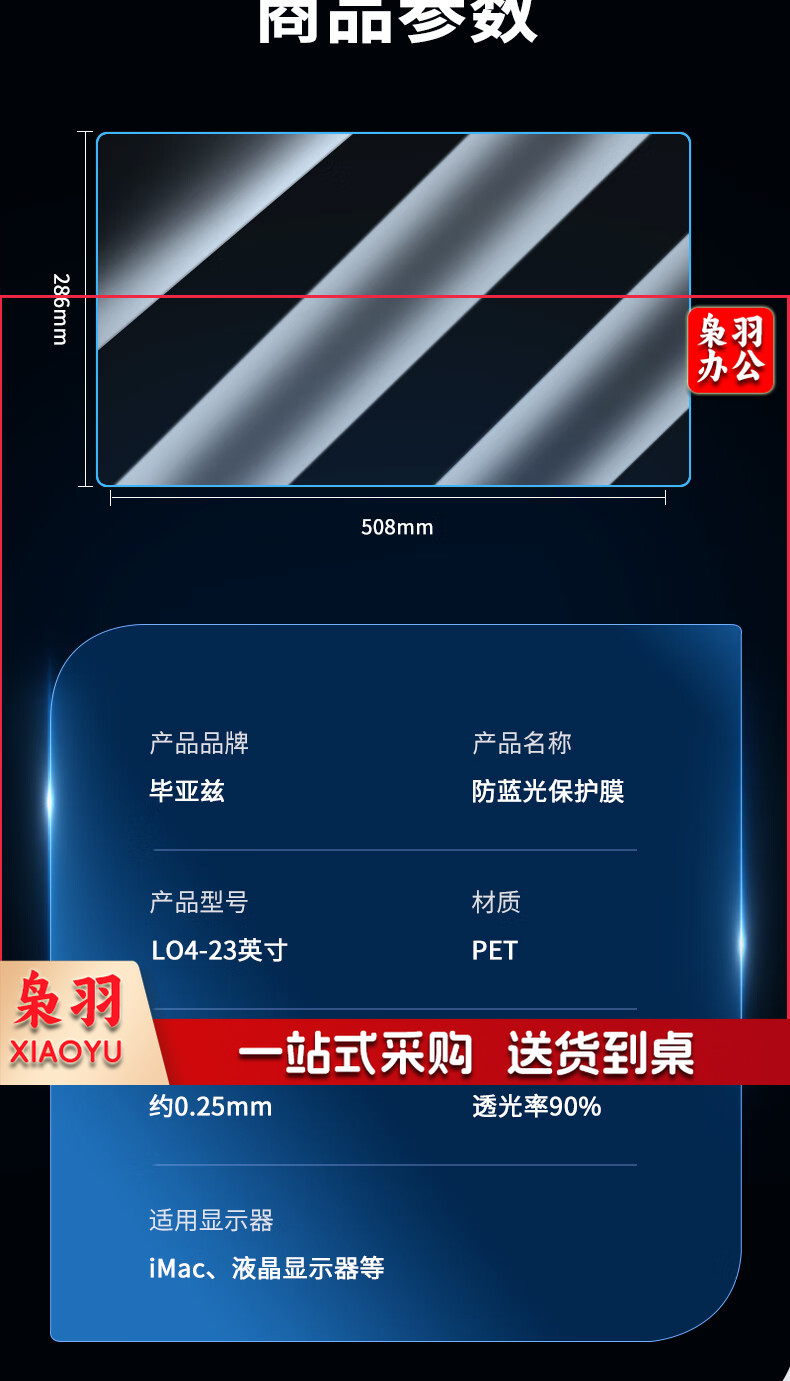 毕亚兹 电脑防蓝光保护屏 笔记本防蓝光膜 显示器屏幕磨砂膜 台式电脑抗反光保护膜 通用23英寸(16:9)