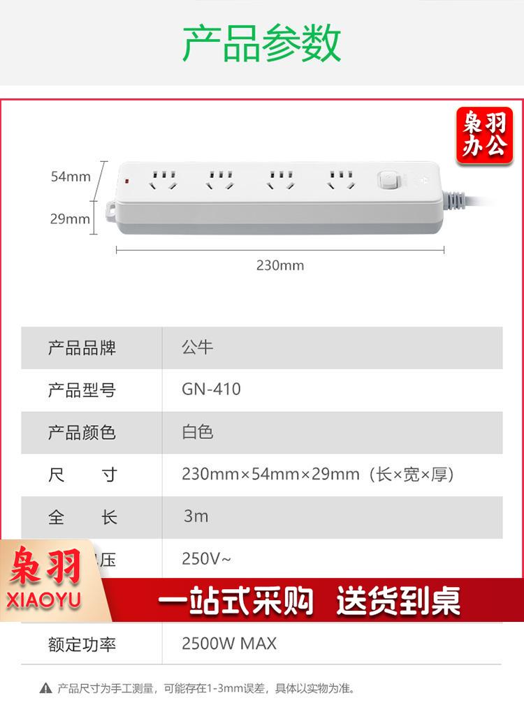 公牛(BULL) 新国标插座/插线板/插排/排插/接线板/拖线板 GN-410 4位总控全长3米