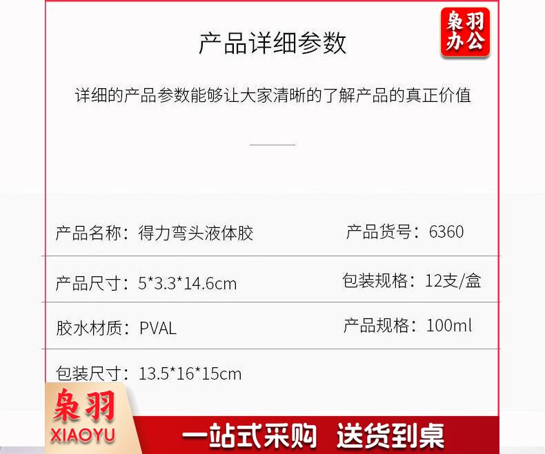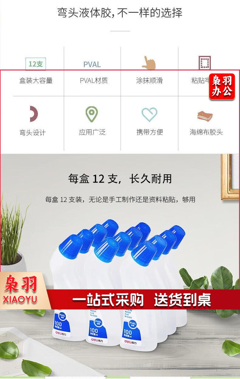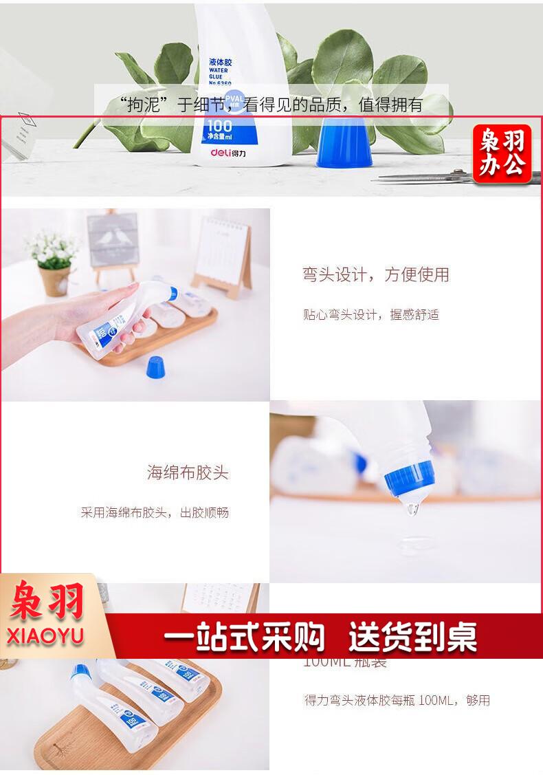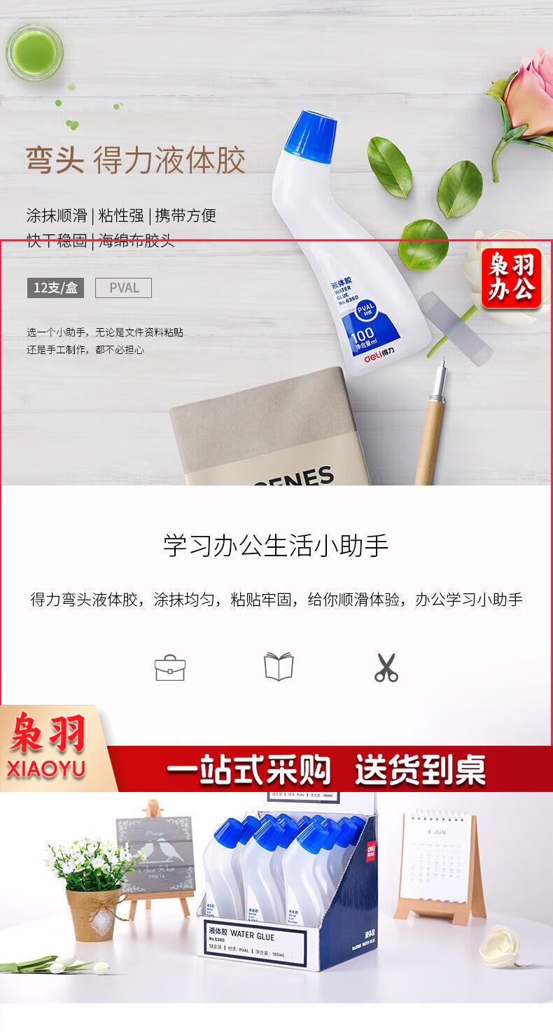 新品 得力6360胶水100ML办公弯头液体透明胶学生财务用品强力胶 6360(6瓶)