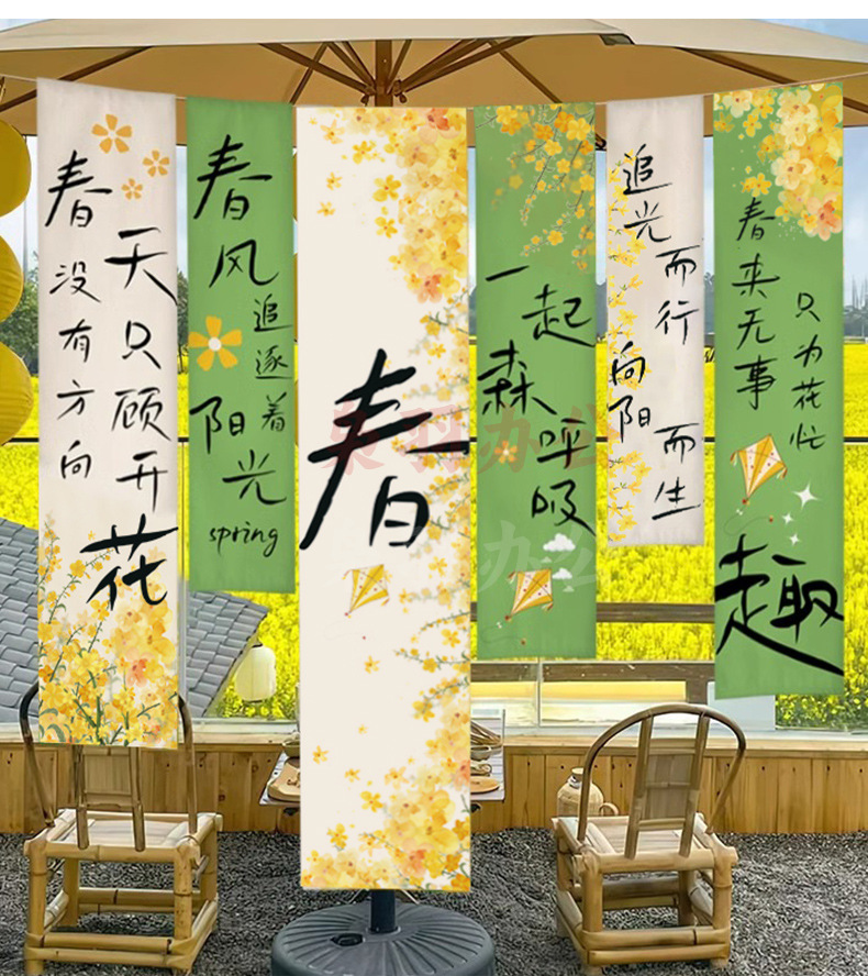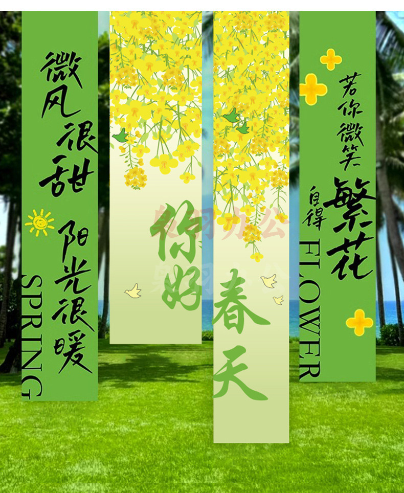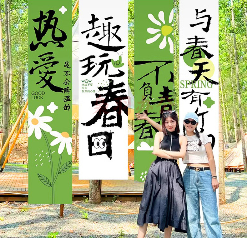 春天氛围装饰KT立牌商场布置幼儿园户外春游仪式网红拍照挂布条幅(【0.85M*1.4M⭐我和春天有个约会】春天打卡指示牌C)