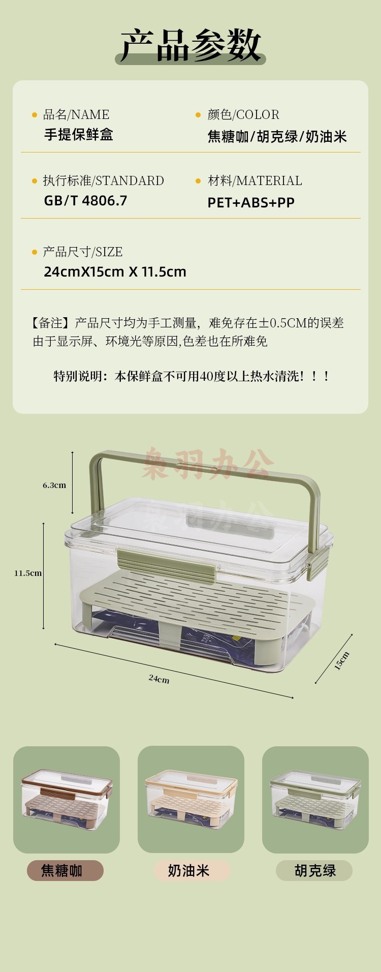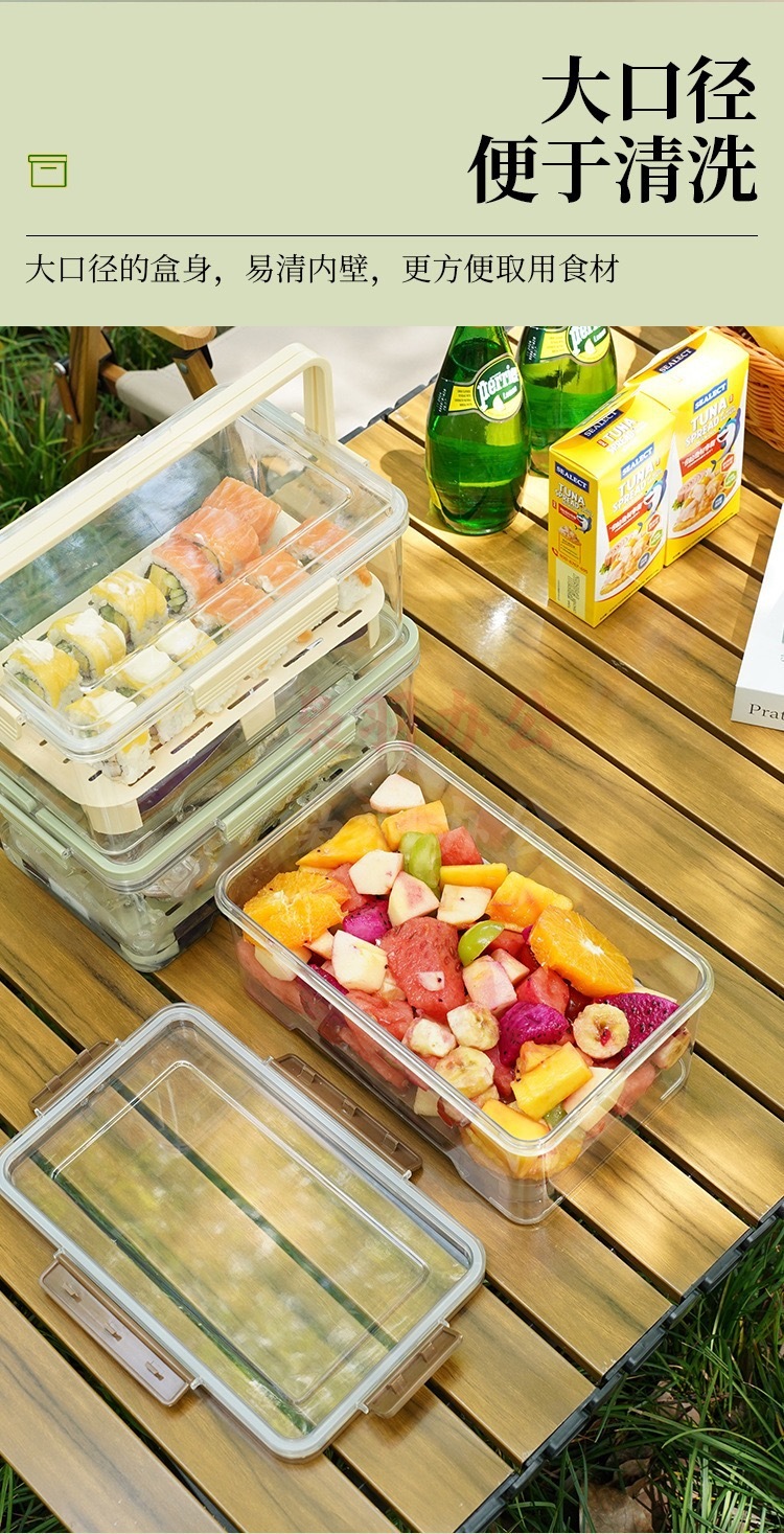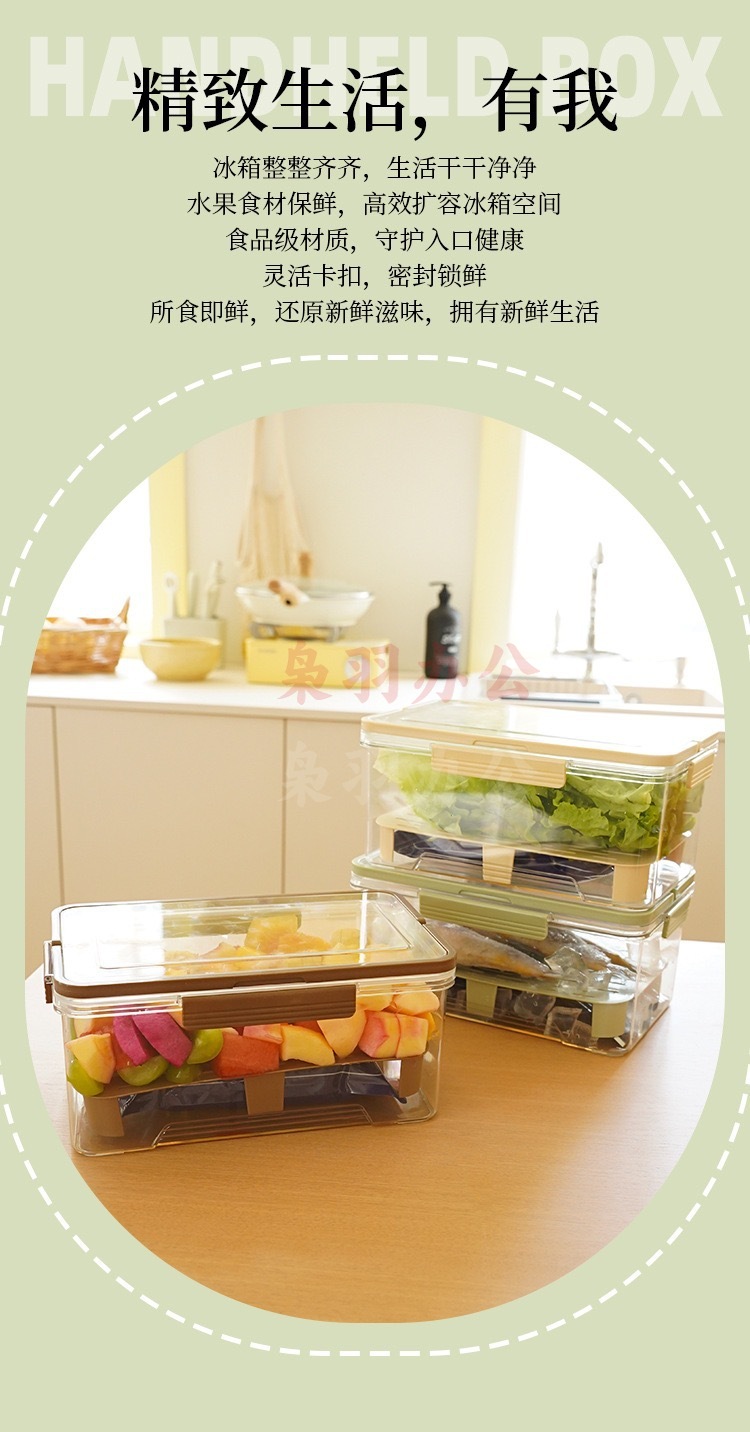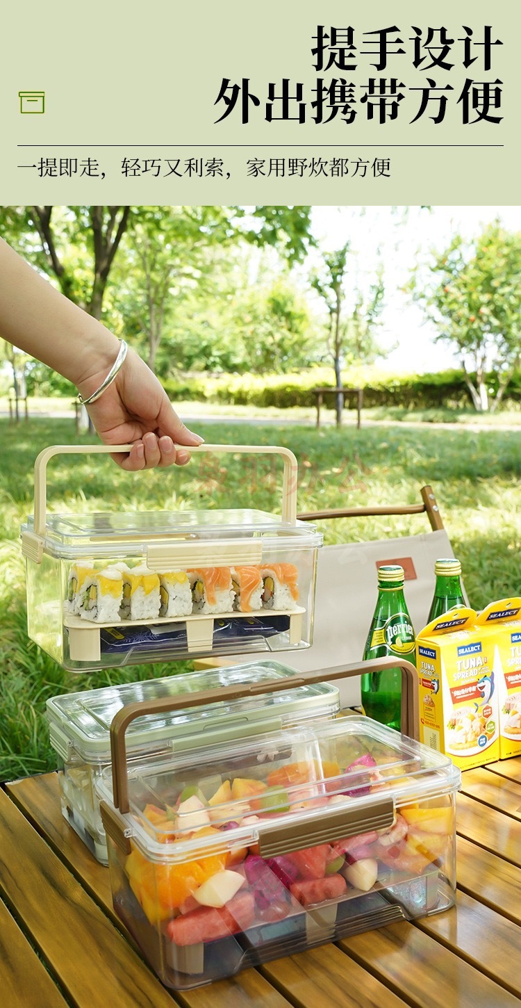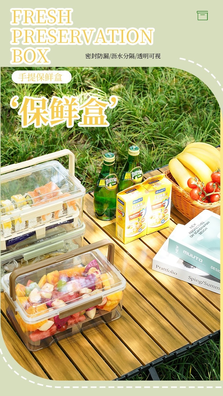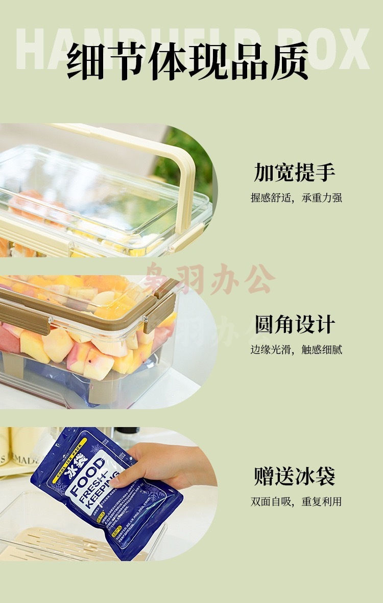 手提便携保鲜盒户外大容量春游水果便当盒密封盒长方形冰箱收纳盒(手提-奶油米【纸盒包装】)