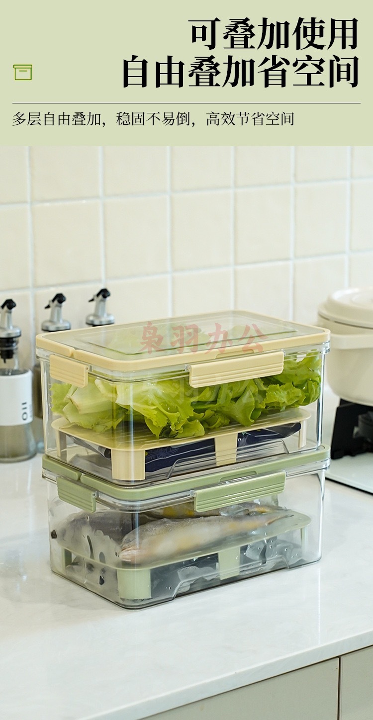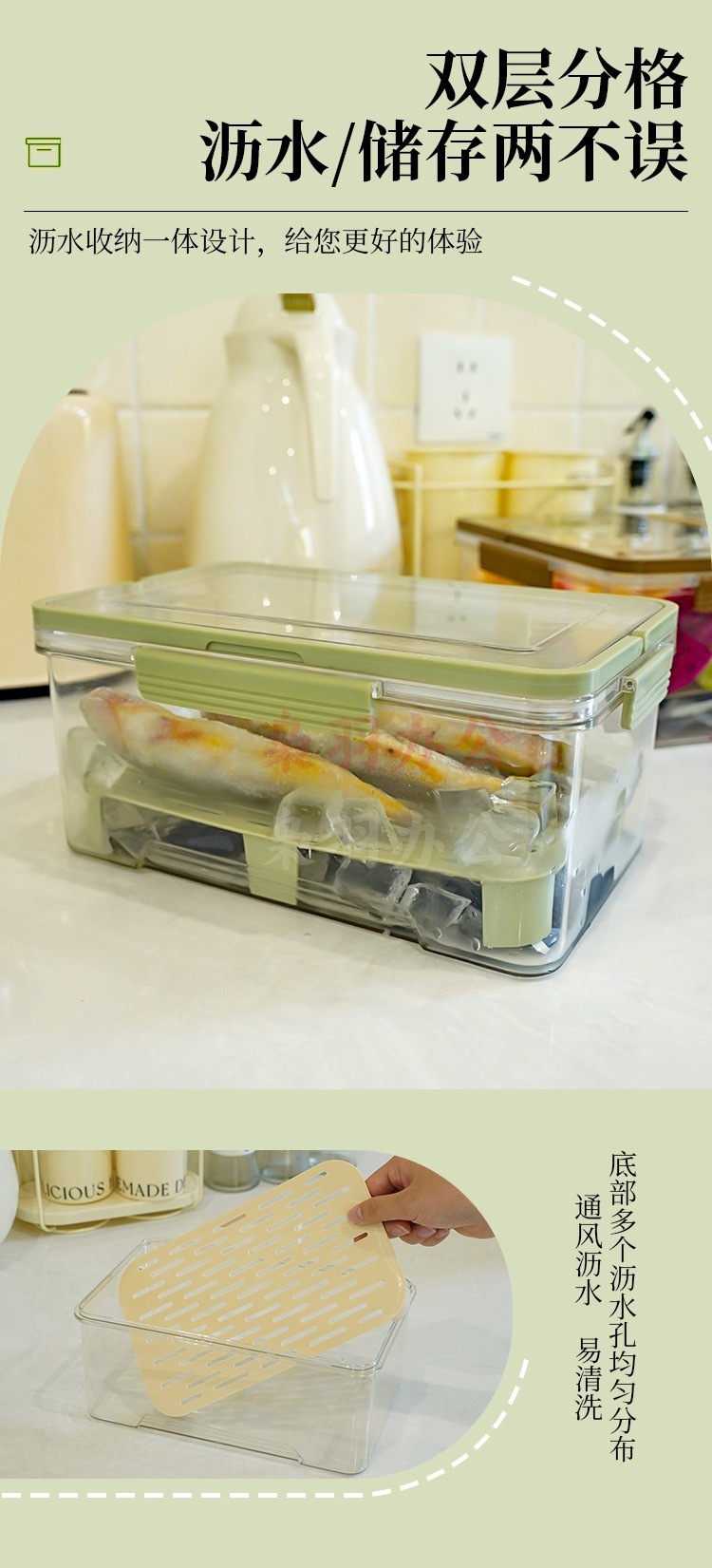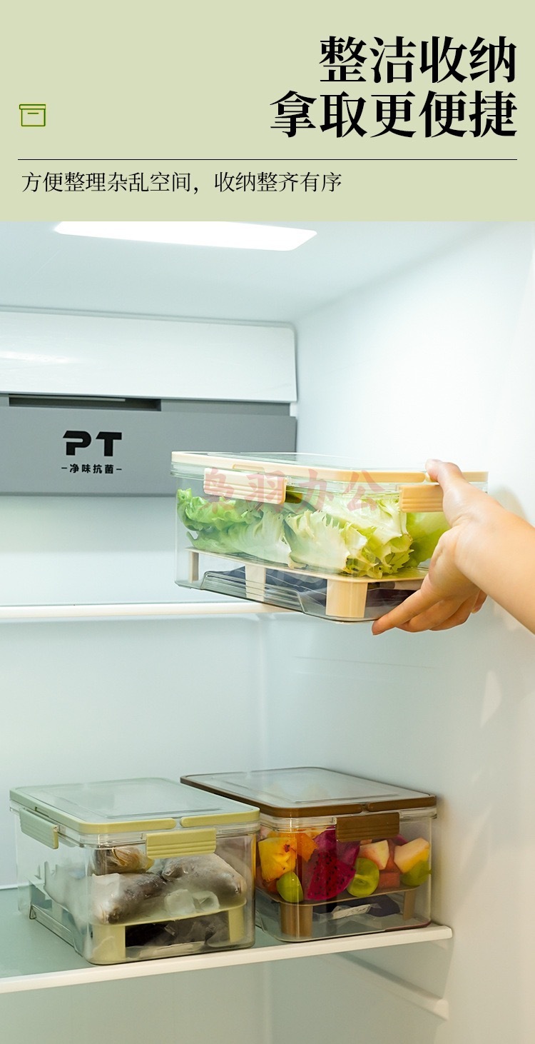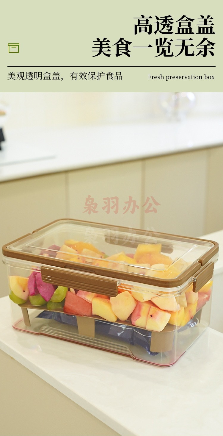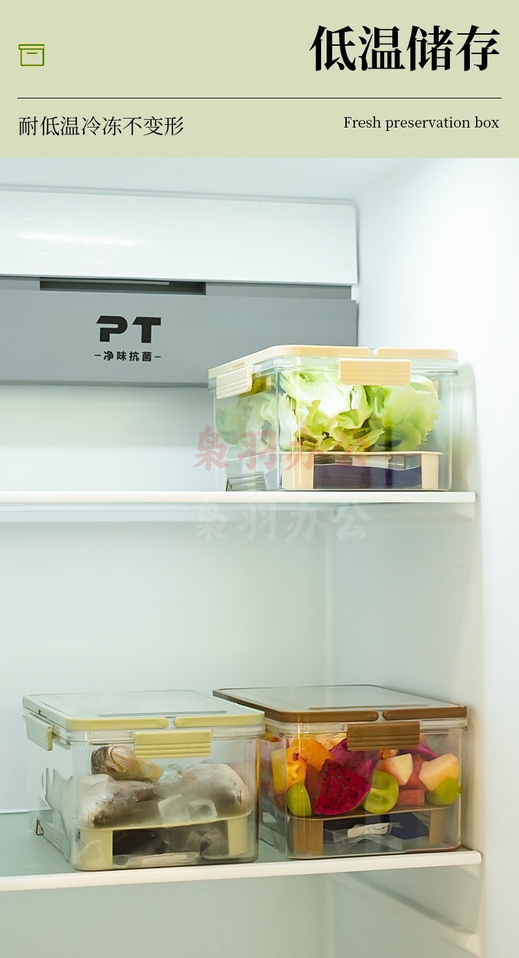手提便携保鲜盒户外大容量春游水果便当盒密封盒长方形冰箱收纳盒(手提-奶油米【纸盒包装】)