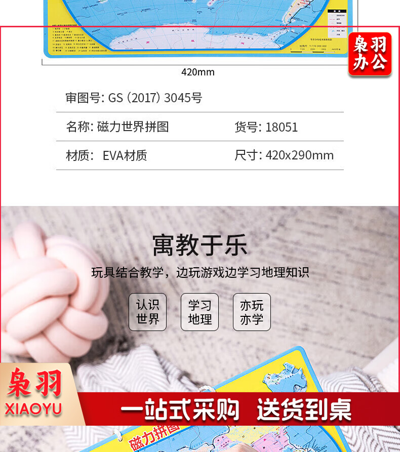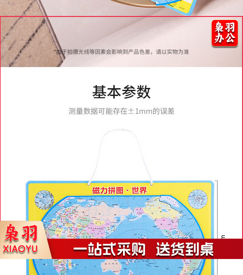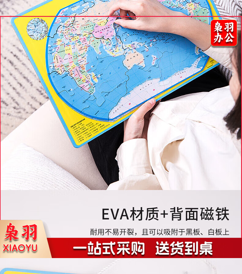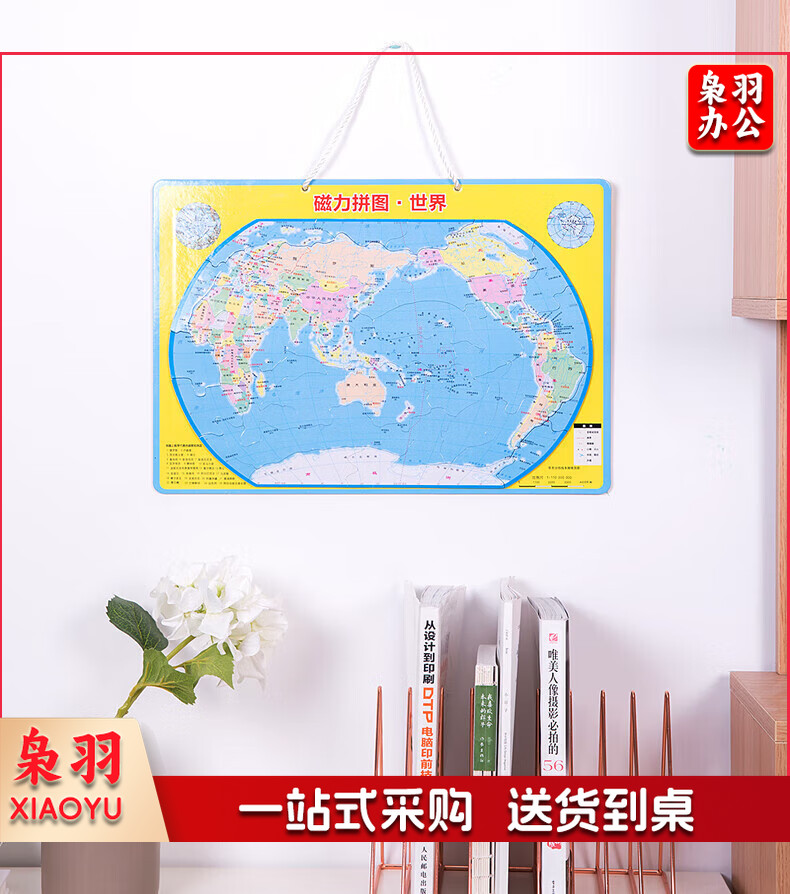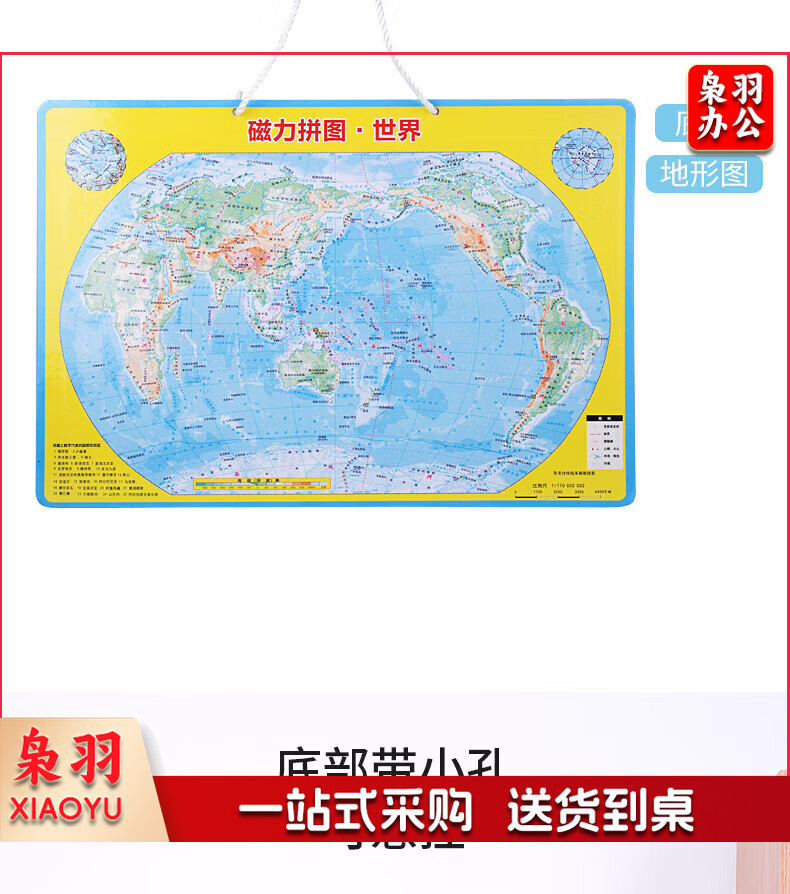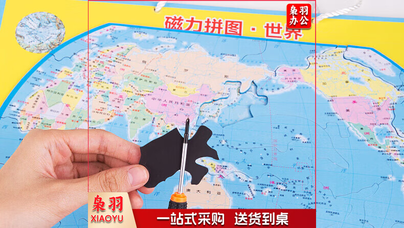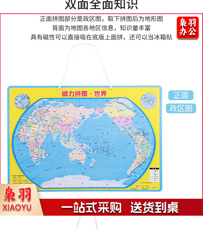 得力(deli)世界磁性地图磁力拼图 学生地理政区世界地形 大号 18051