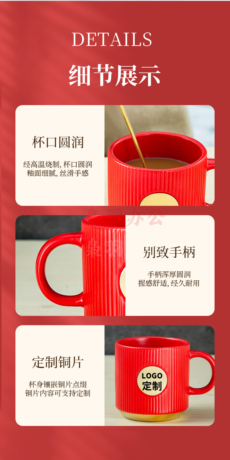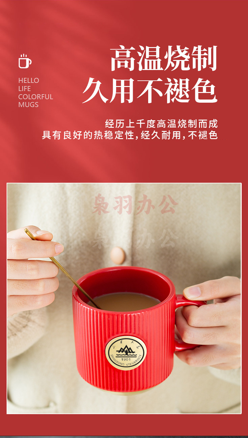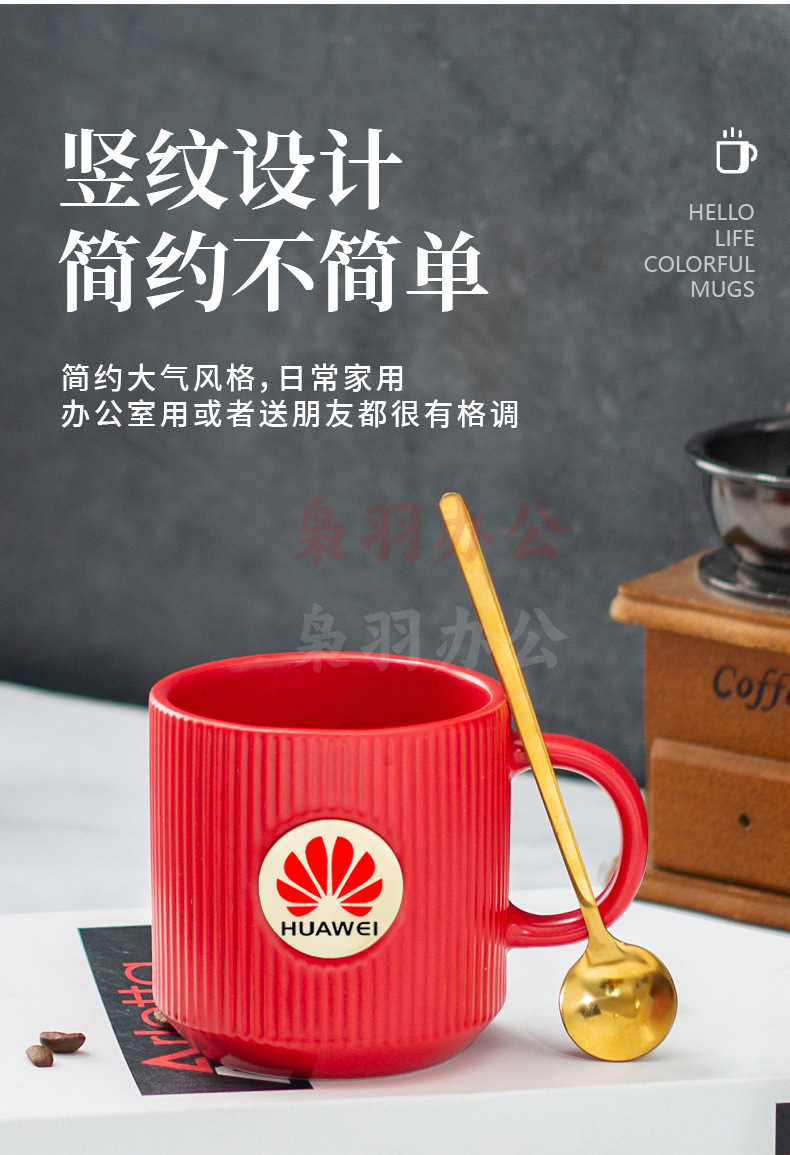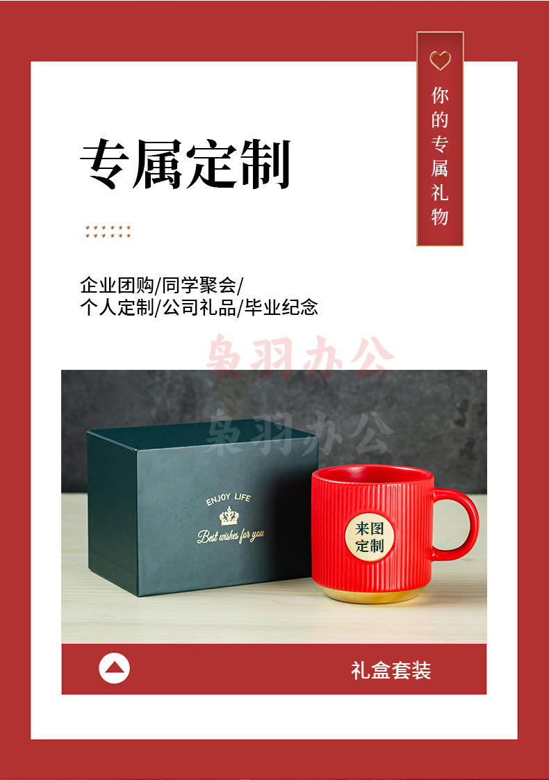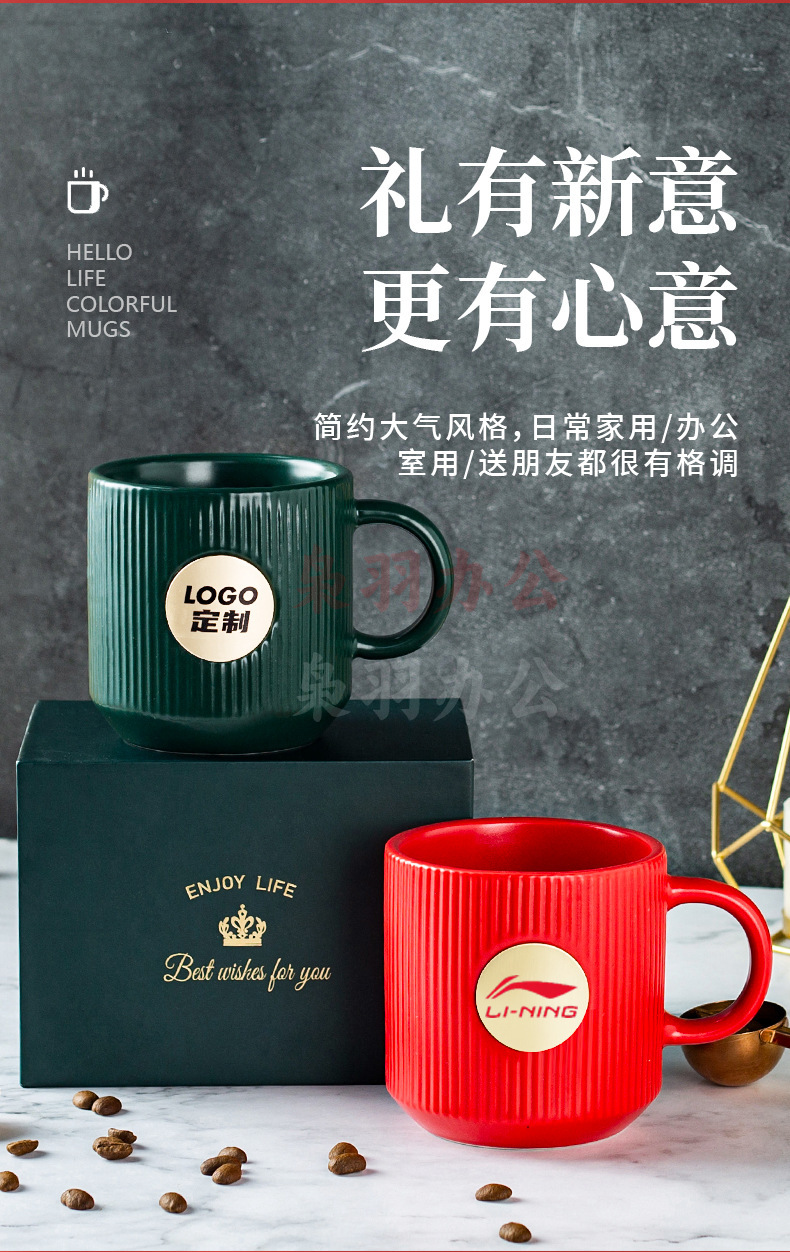陶瓷马克杯定制LOGO高级条纹铜章来图DIY办公室咖啡情侣礼盒套装(白色竖纹描金铜章杯【精品礼盒】)