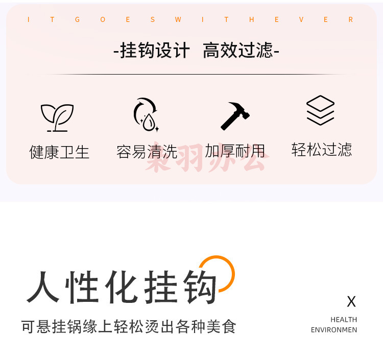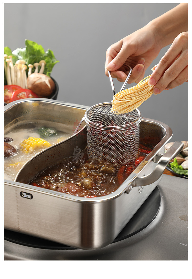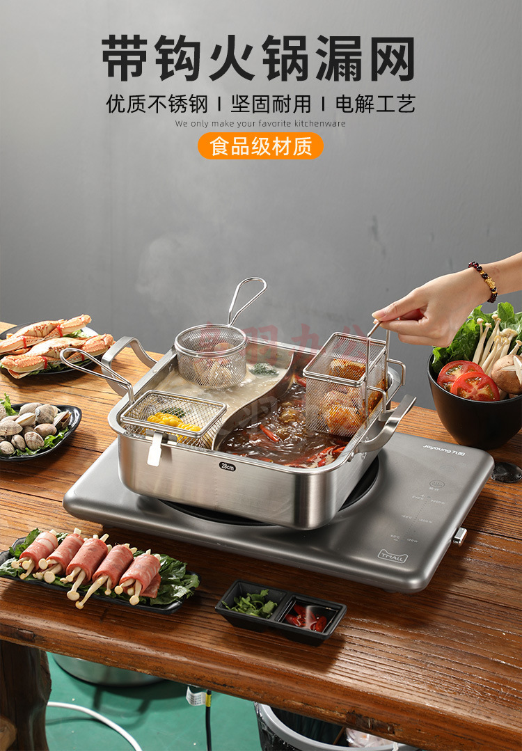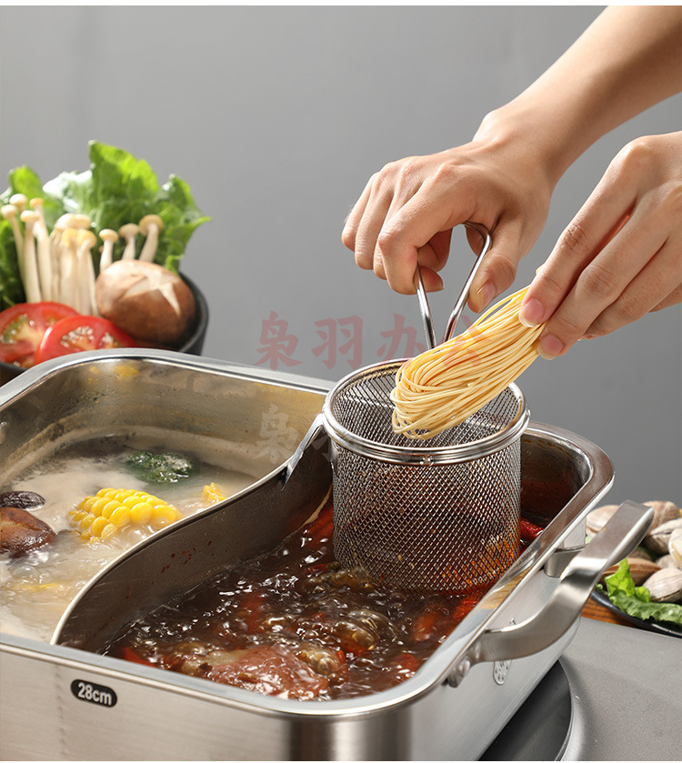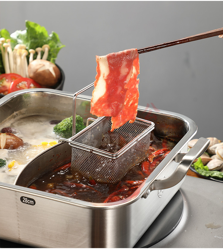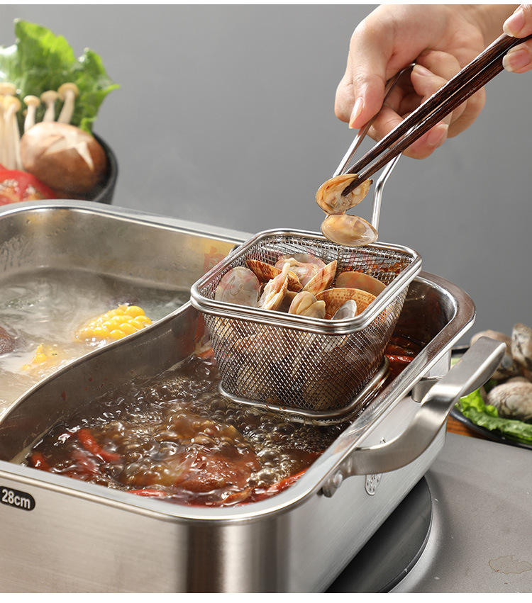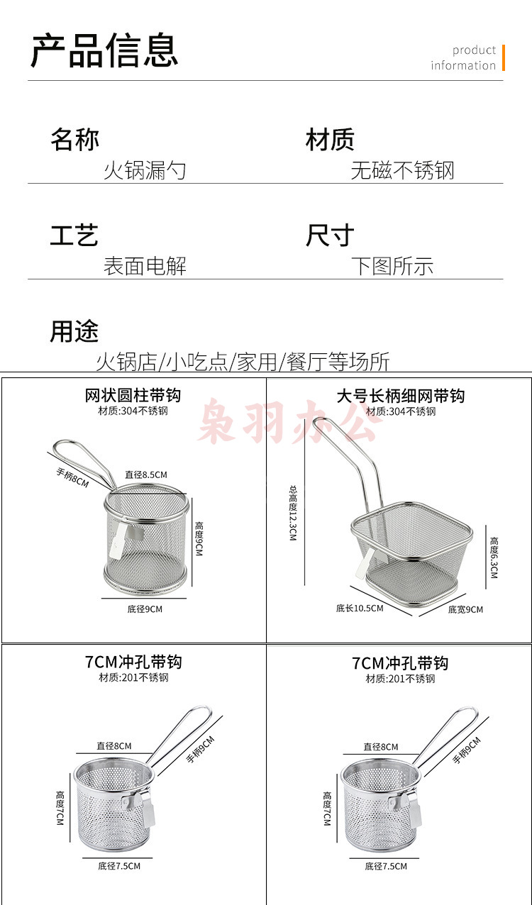 304不锈钢火锅漏勺猪脑漏勺带挂钩脑花涮肉神器过滤网煮面勺带钩(大号加长柄冲孔带钩【304材质】)