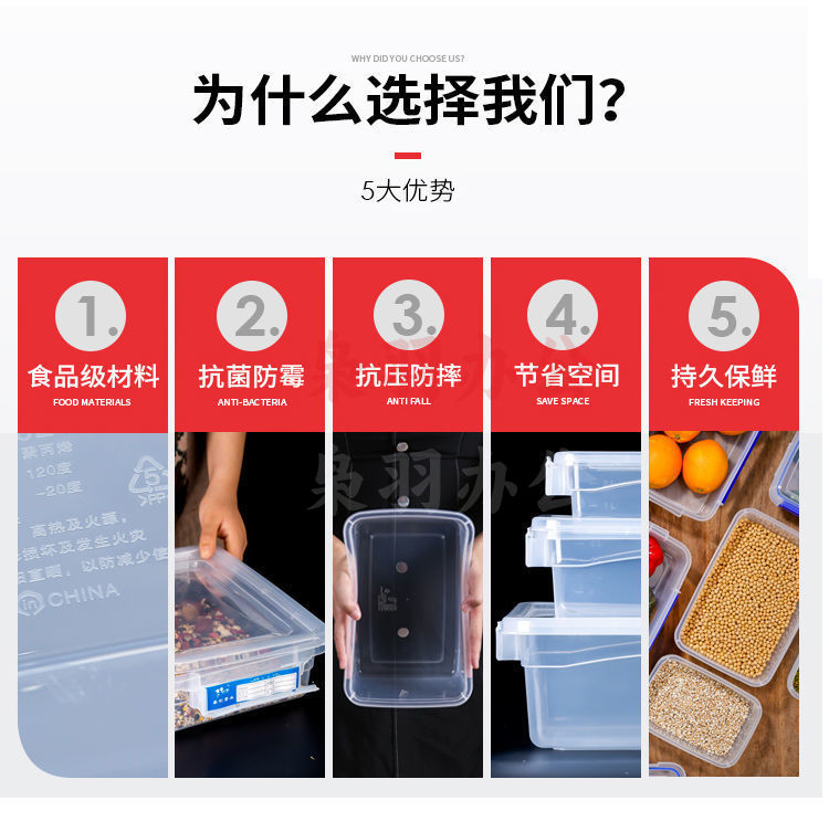 厨房冰箱商用食品级透明塑料保鲜盒冷冻密封收纳盒酒店专用大容量(9升8819双扣款)