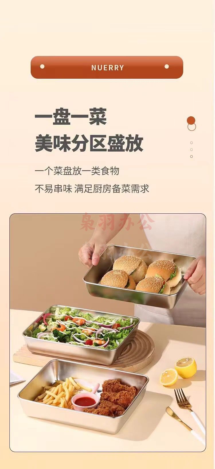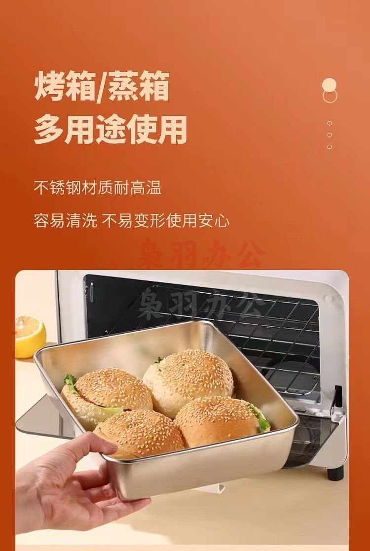 食品级不锈钢保鲜盒餐用托盘长方形盘冰箱收纳盒烤箱露营野餐托盘(410材质25*20*5(带盖))