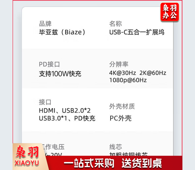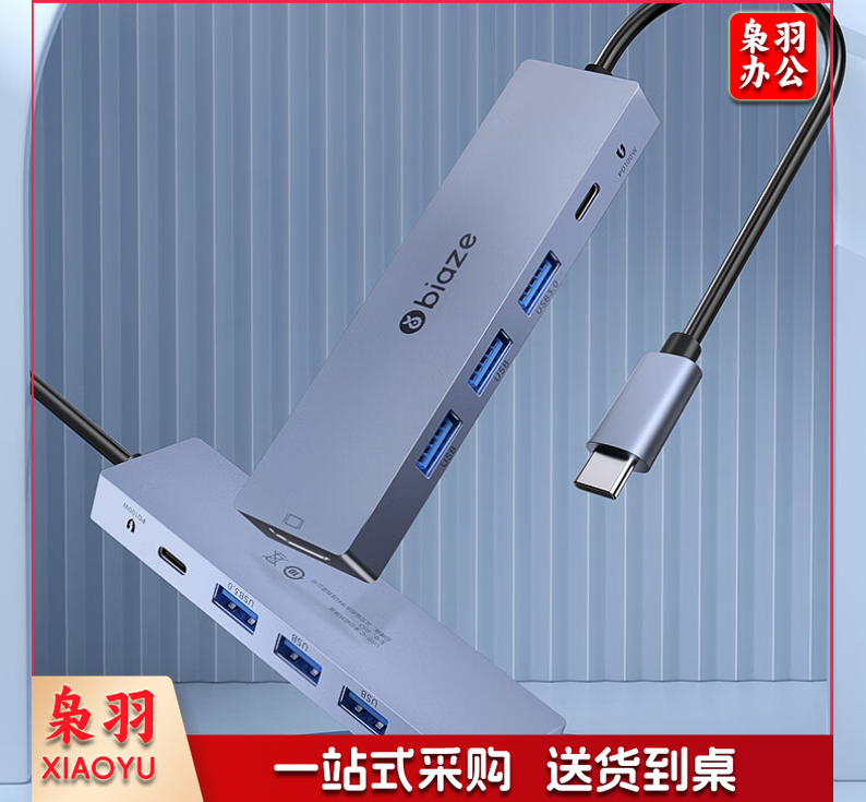 毕亚兹 Type-C扩展坞 USB-C转HDMI转接头4K投屏PD充电 R53-5口