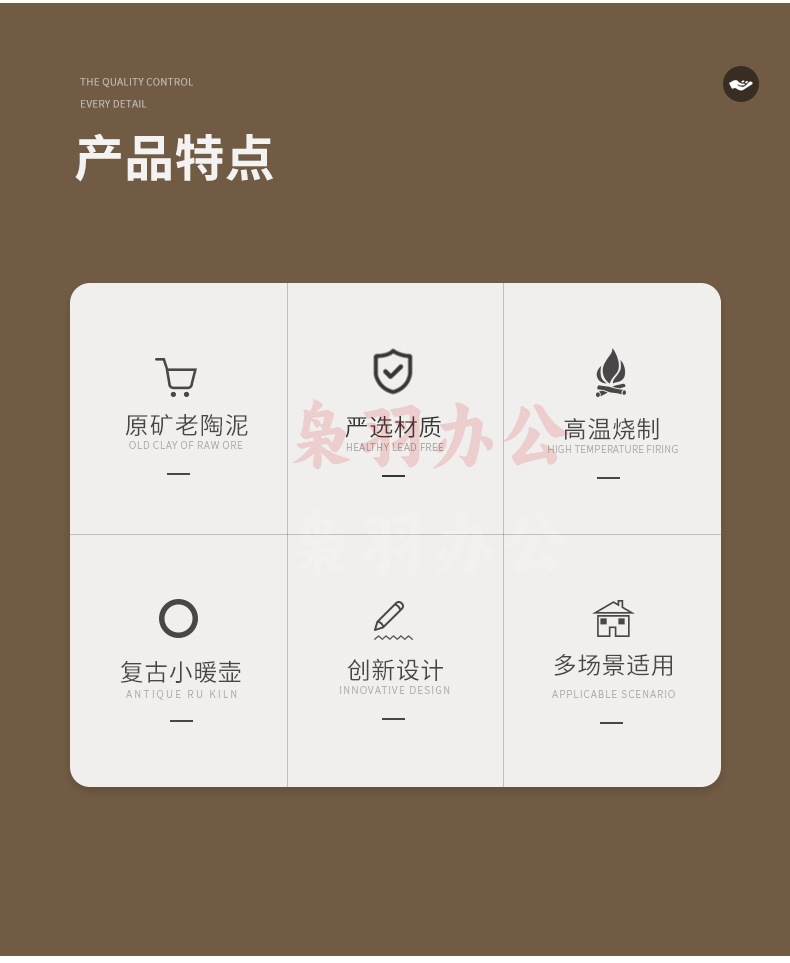 汝窑小暖壶马克杯带盖陶瓷焖茶杯中式大容量保温瓶办公杯子带手柄(草木灰【静心】小暖壶)