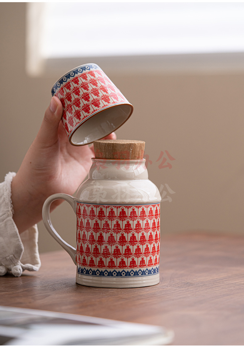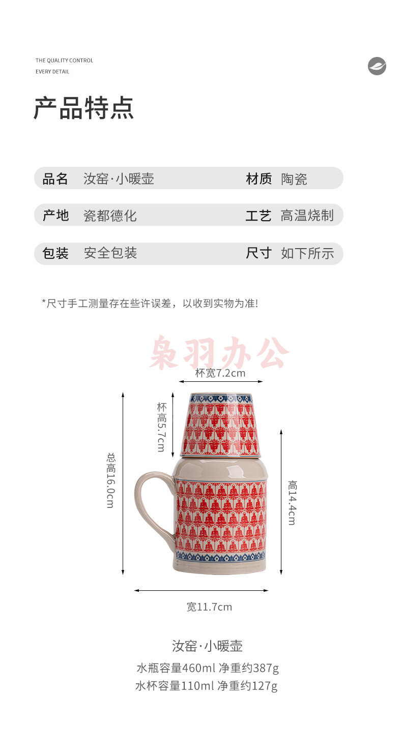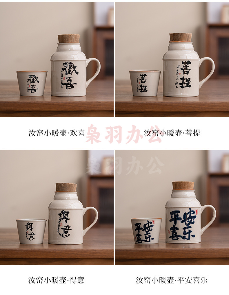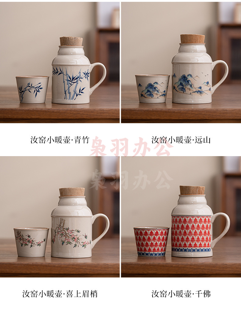 汝窑小暖壶马克杯带盖陶瓷焖茶杯中式大容量保温瓶办公杯子带手柄(草木灰【远山】小暖壶)