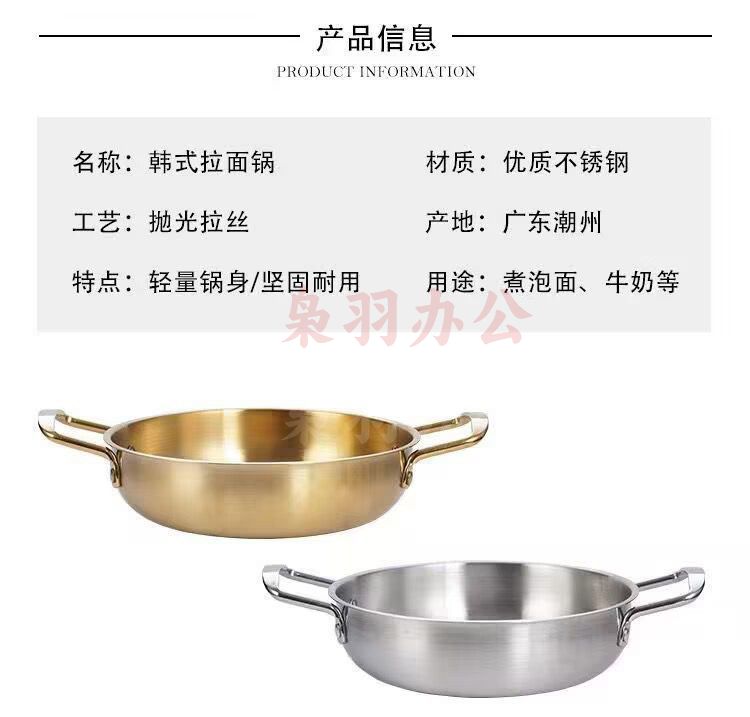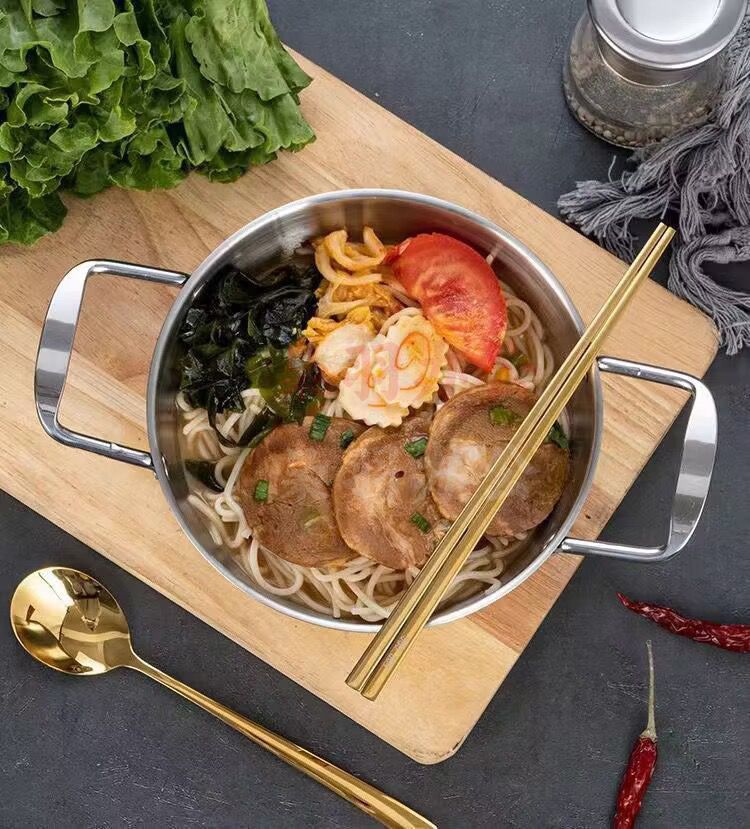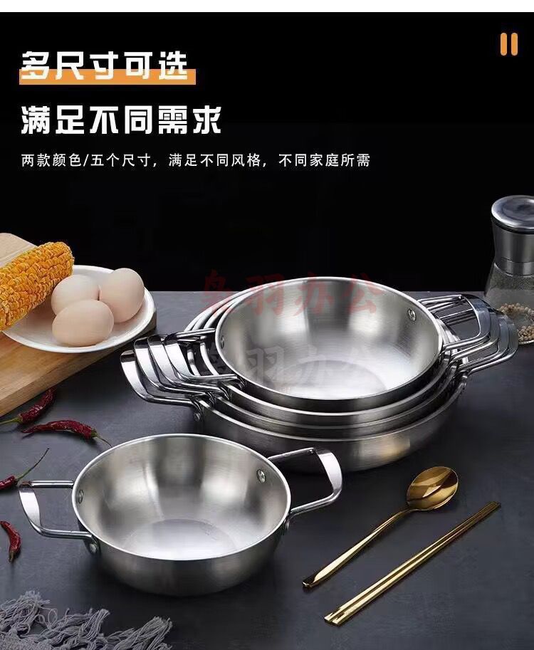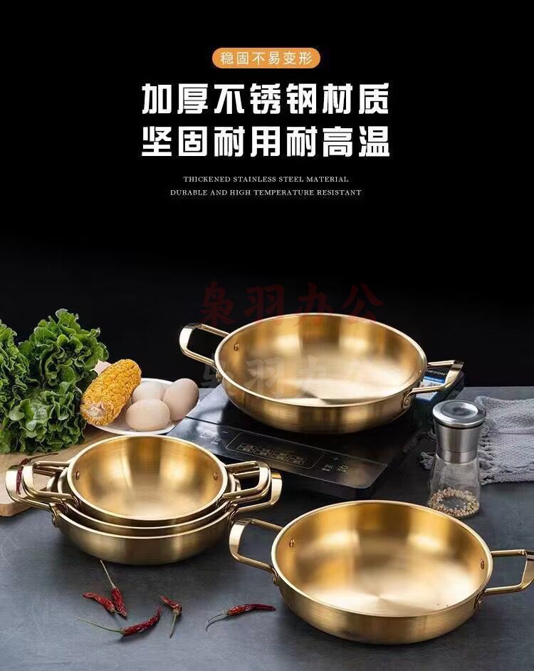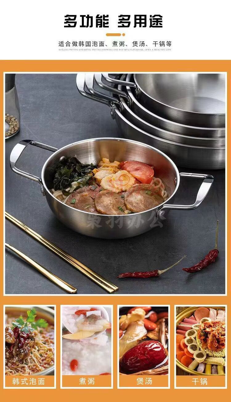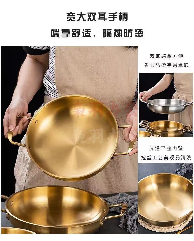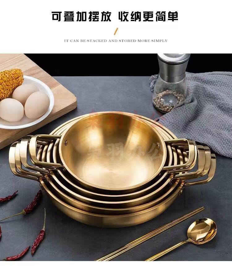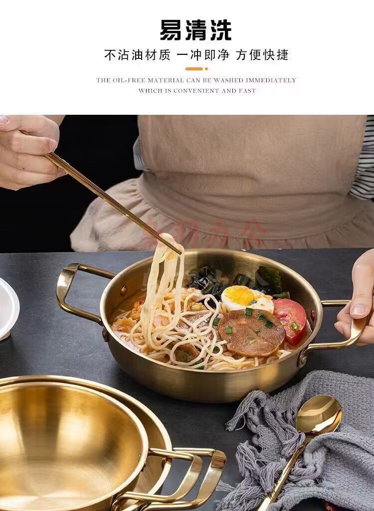 韩式不锈钢泡面锅单人小火锅金色双耳干锅锅仔家用燃气汤锅海鲜锅(内径18cm)