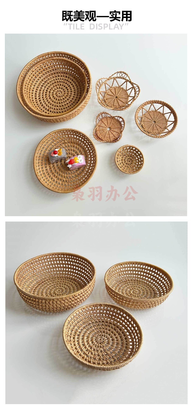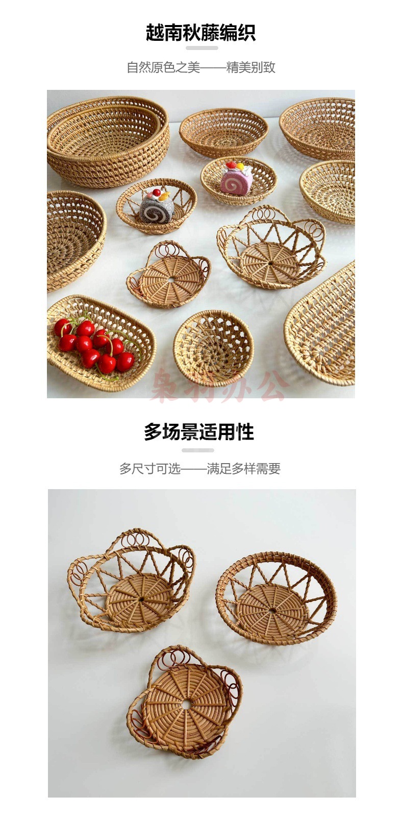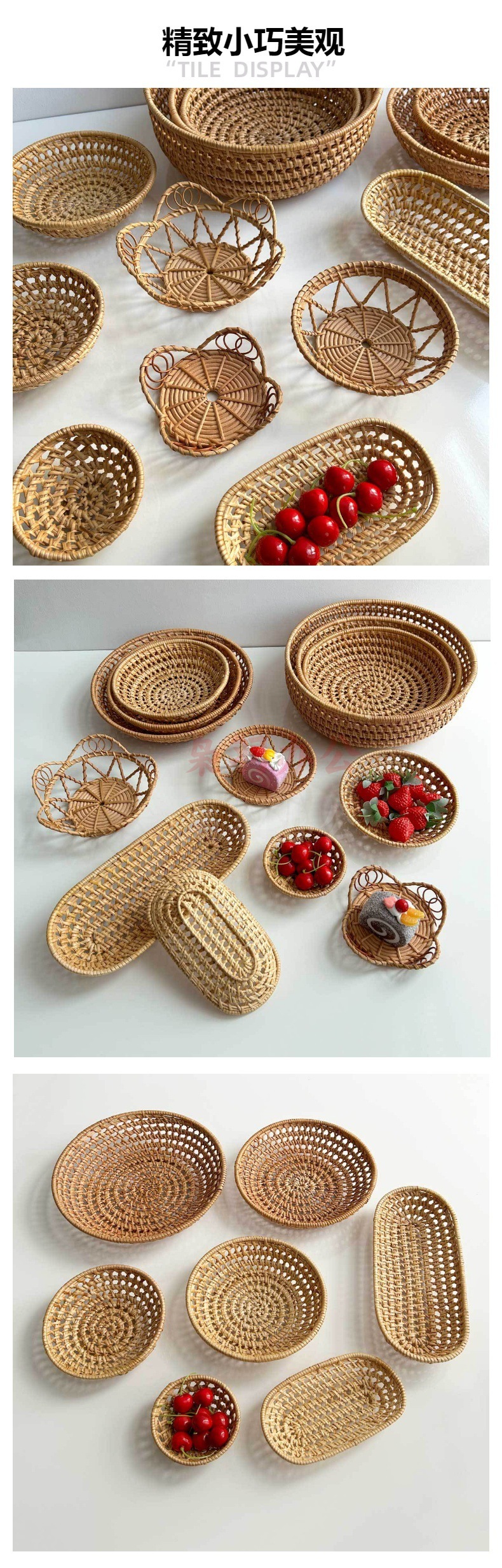 批发越南秋藤编织收纳篮茶漏篮子水果盘镂空篮家用编织小托盘(圆形五角星13.5*7*2.5cm)