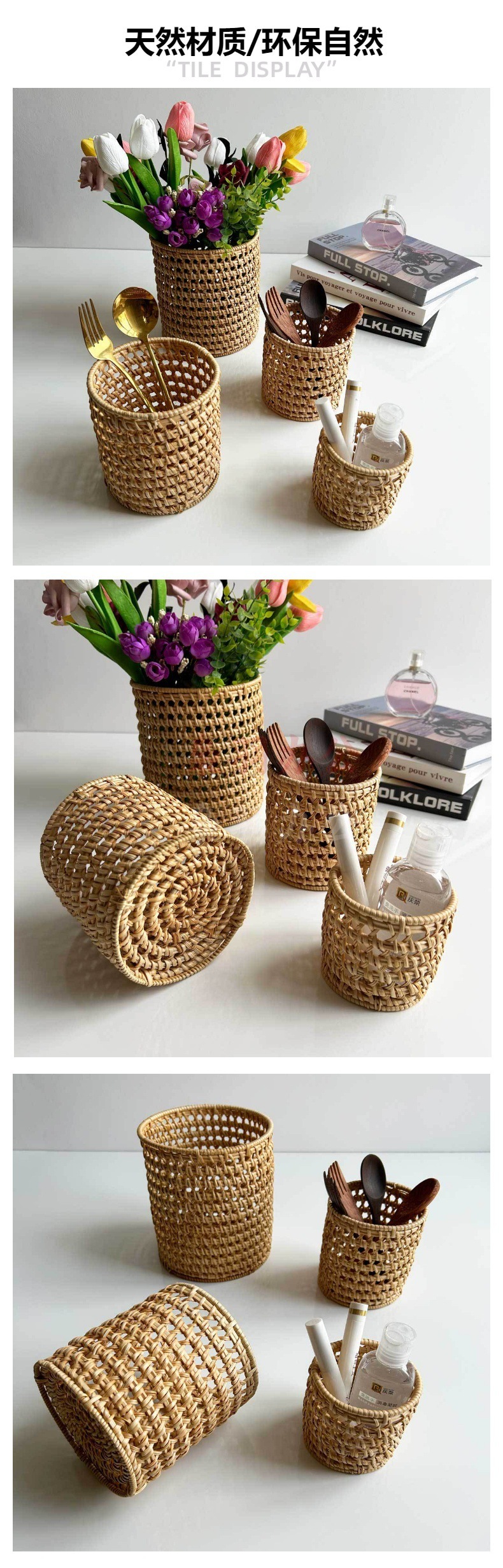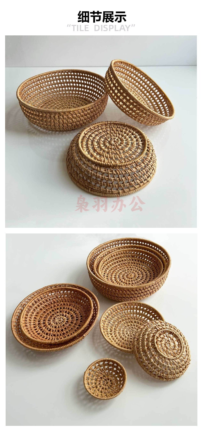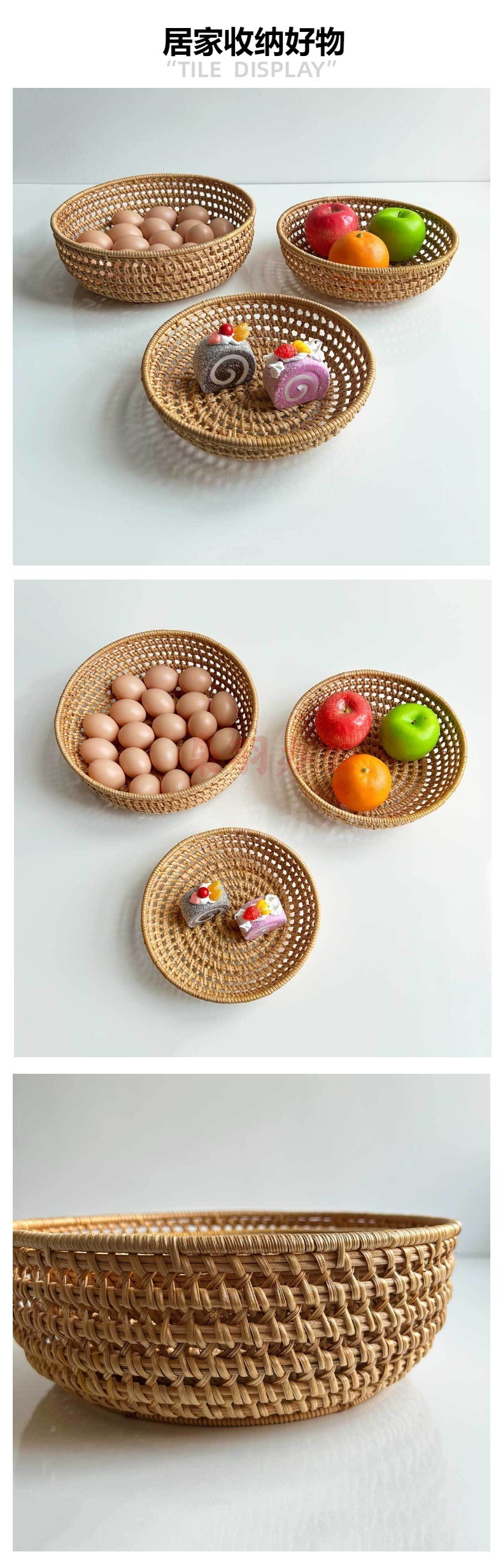 批发越南秋藤编织收纳篮茶漏篮子水果盘镂空篮家用编织小托盘(圆形五角星13.5*7*2.5cm)