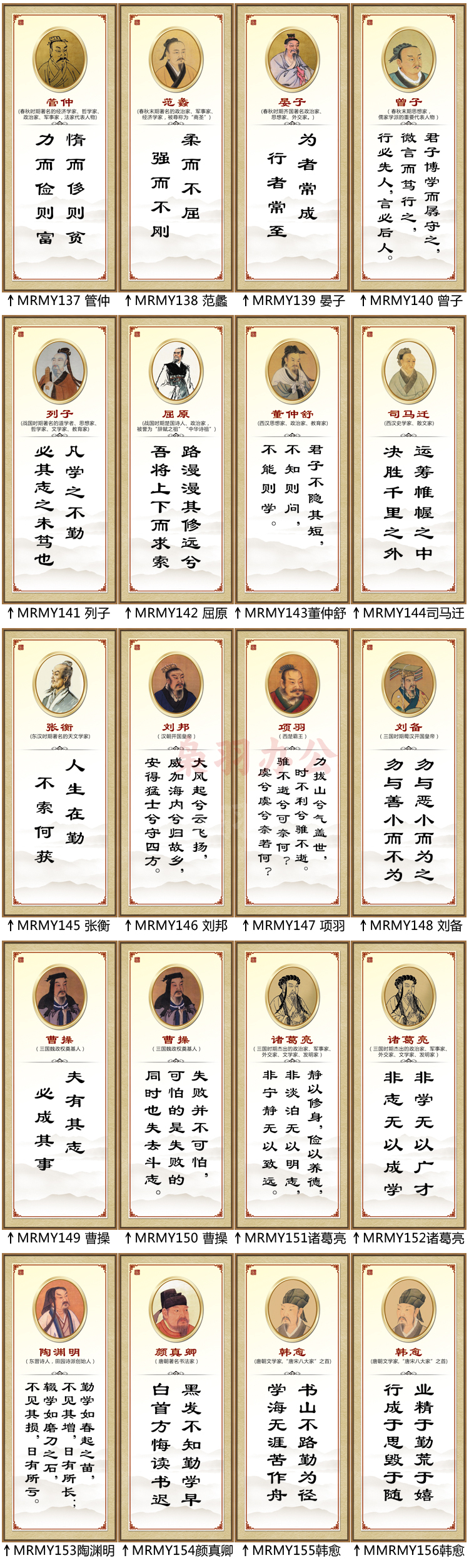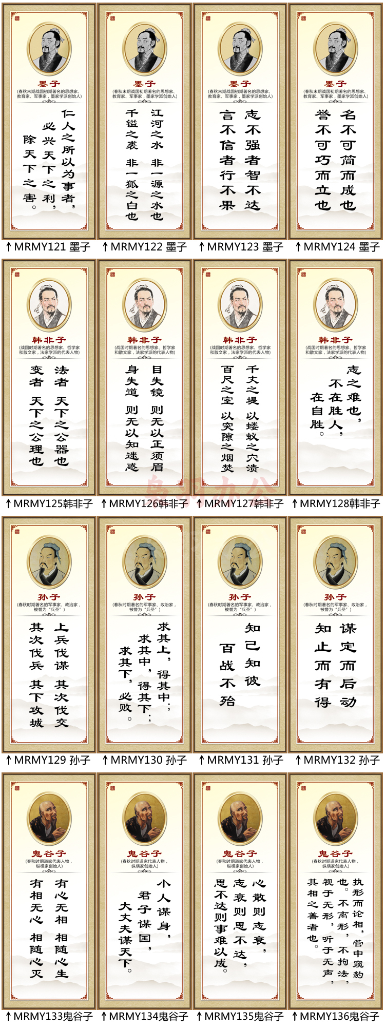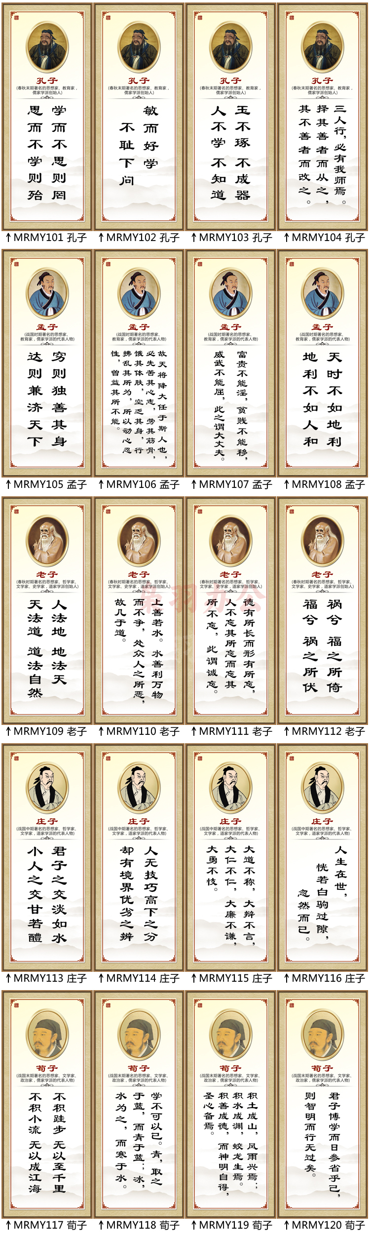 名人名言KT板励志教室标语墙贴孔子孟子老子庄子荀子布置学校挂画30*75厘米-KT板+金边(5张起寄)-自选