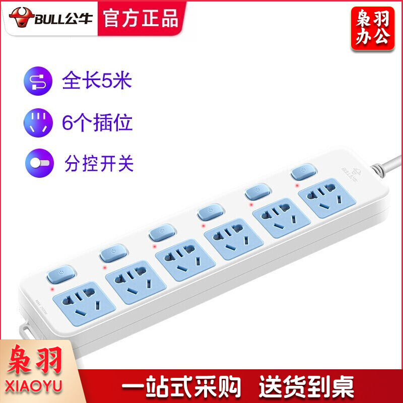 公牛(BULL) GN-317 插座分控插排独立开关多功能接线板家用电插板带线拖线板 6插位 5米
