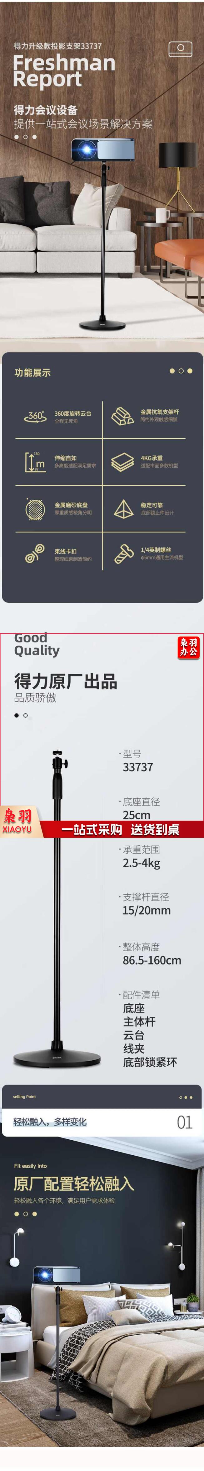得力(deli)投影仪支架 旋转云台 适配坚果极米当贝小米投影仪 落地可伸缩支架 投影仪幕布通用支架33737