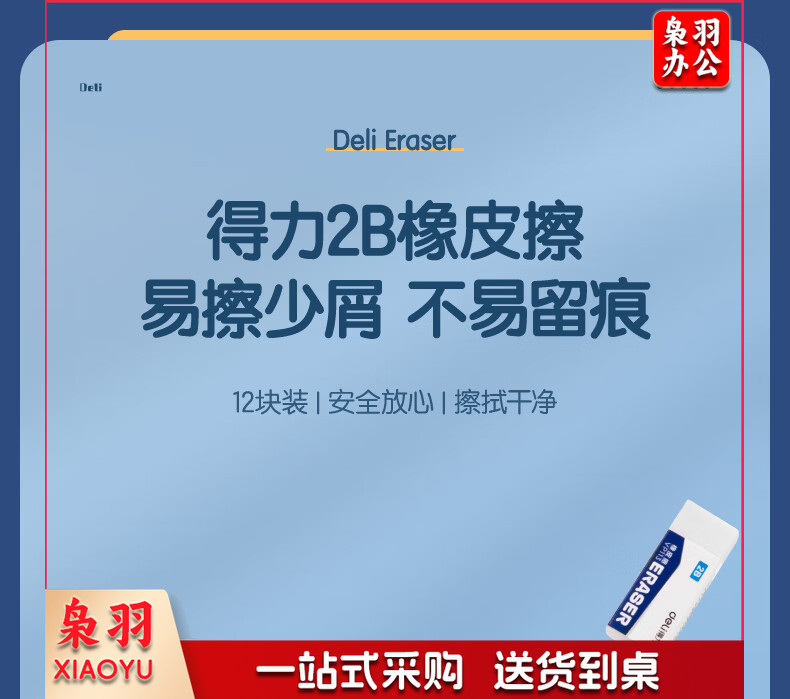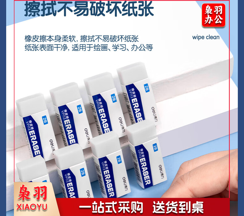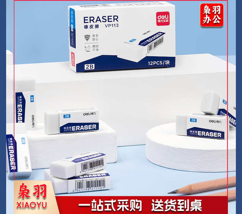 得力(deli) 12块装2B橡皮擦 白色易擦少屑橡皮