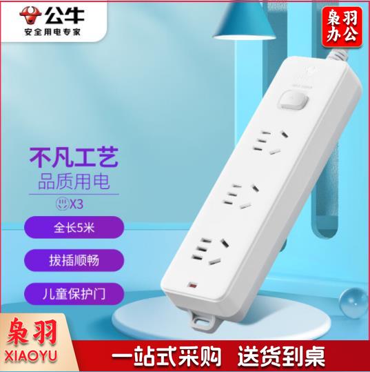 公牛(BULL)新国标插座/插线板/插排/排插/接线板/拖线板 GN-212 3位总控全长5米