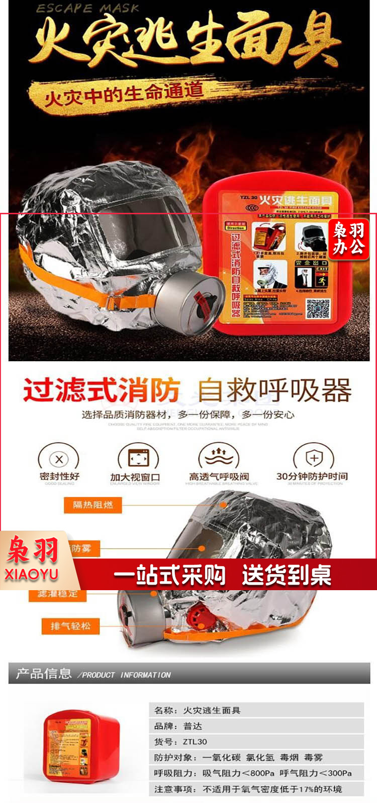 柏达 TZL30 过滤式自救呼吸器防毒防烟家用逃生面具