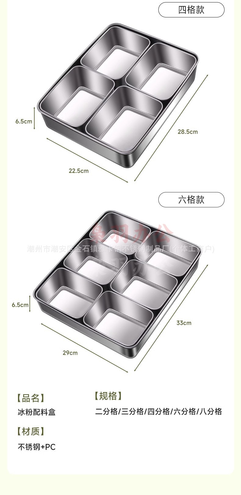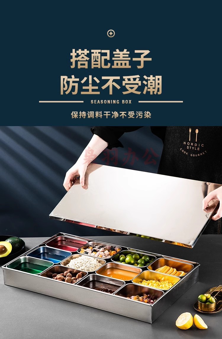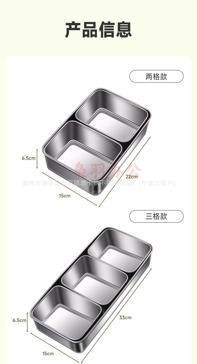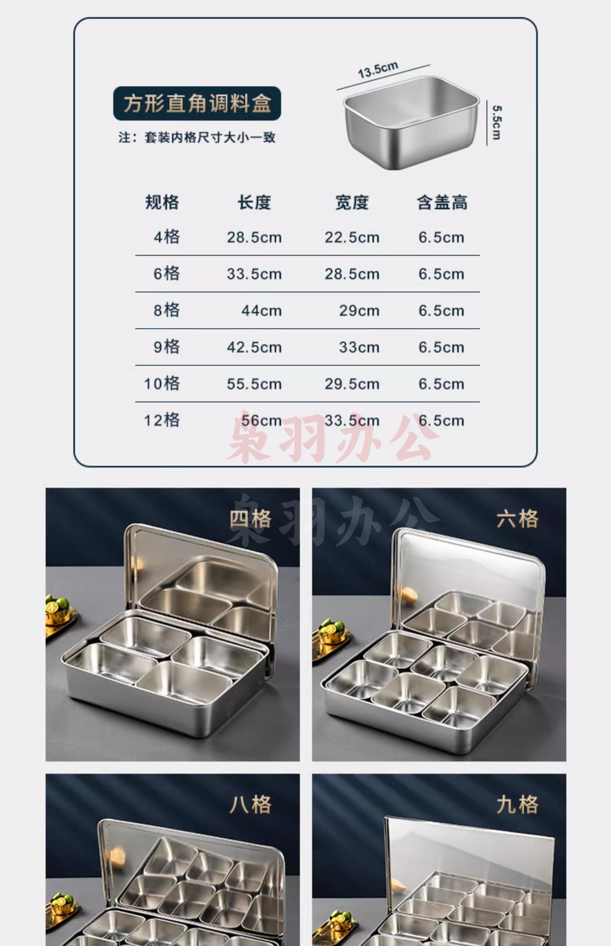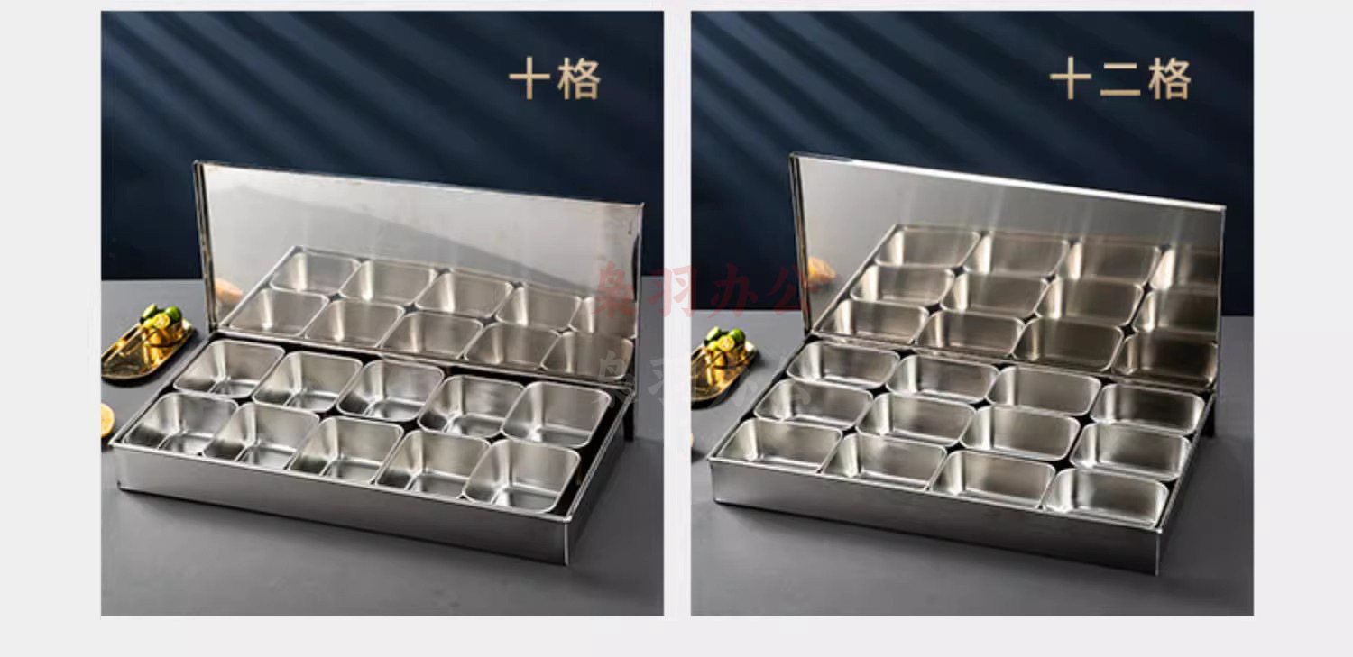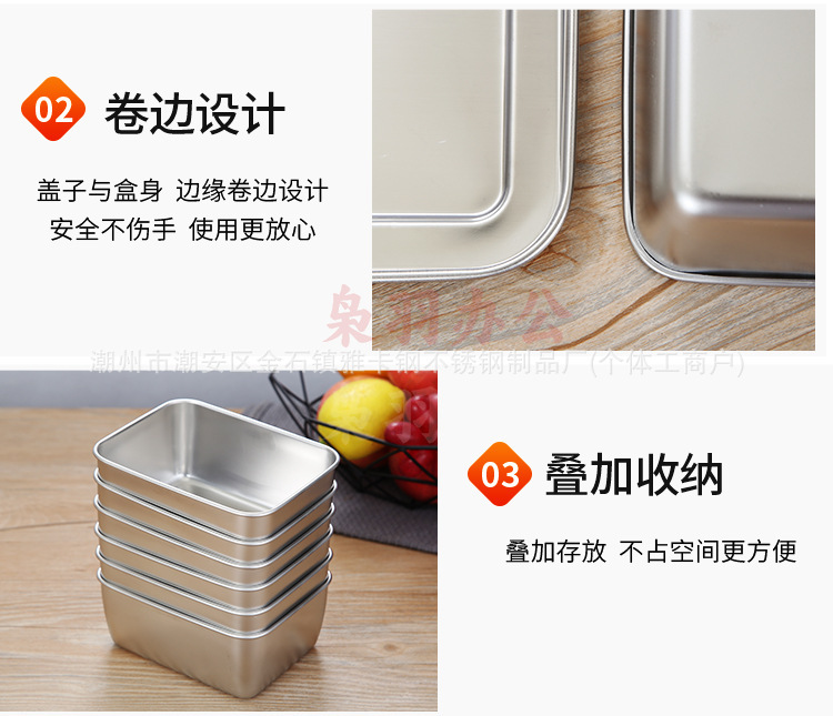 不锈钢调味盒商用日式收纳调料盒家用长方形八格拉米苏带盖留样盒(三格)