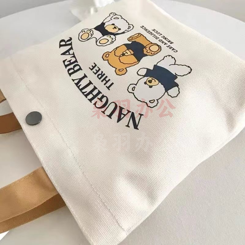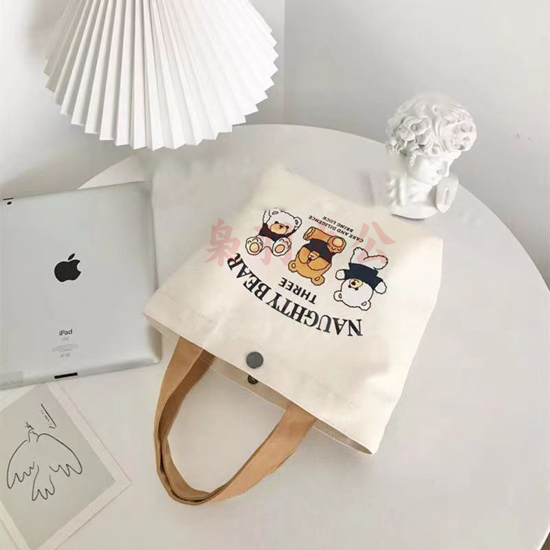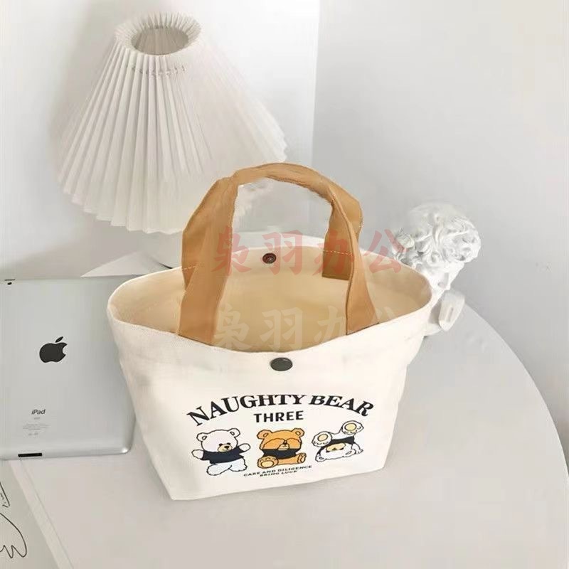 帆布包三只小熊帆布包便携手提袋便当小巧卡通帆布袋百搭饭盒袋简约上班(一个)