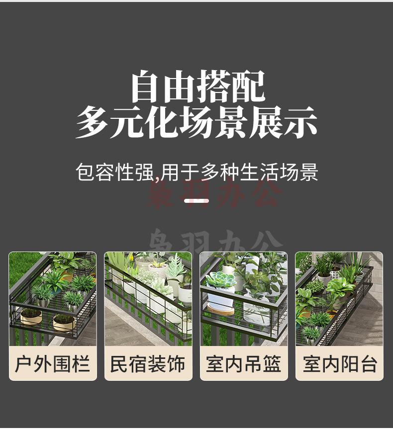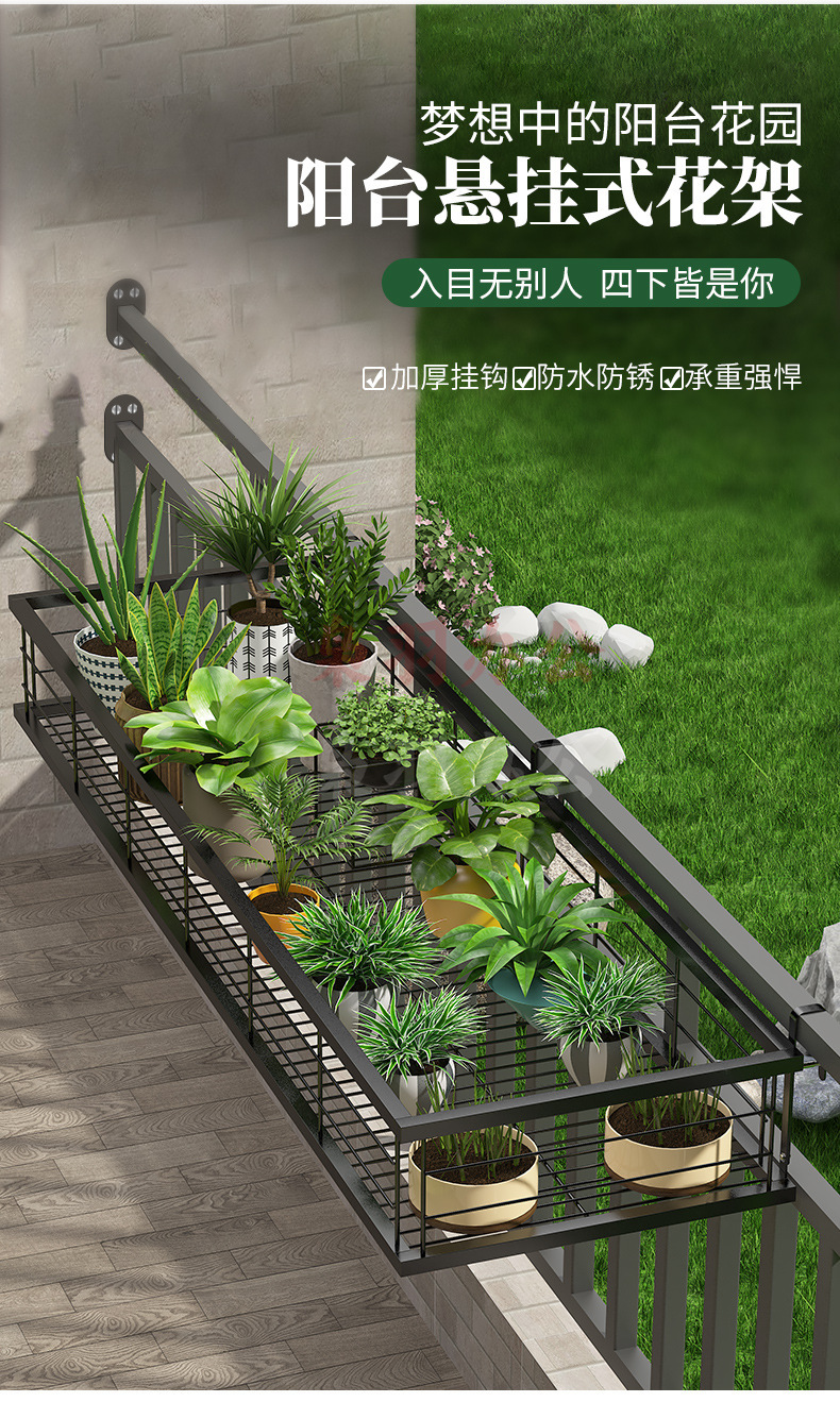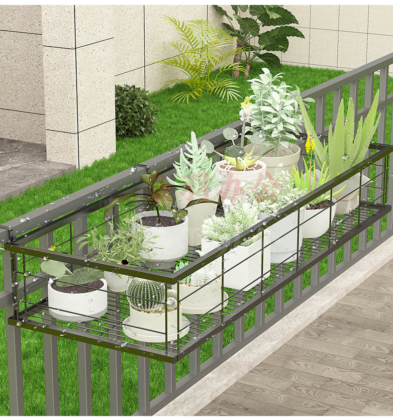 阳台爆款花架悬挂式护栏花盆户外栏杆窗台铁艺架子室内置物架客厅(加厚80X25X12CM【不倾斜】【生锈包换】)