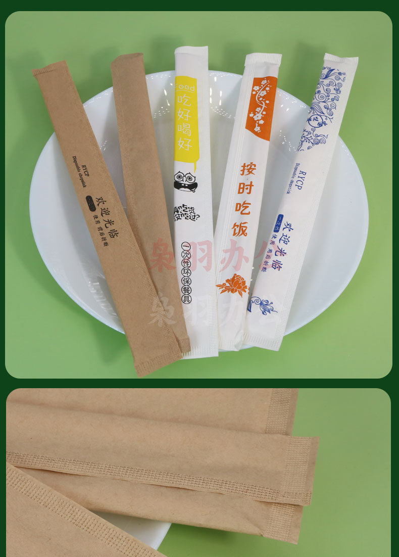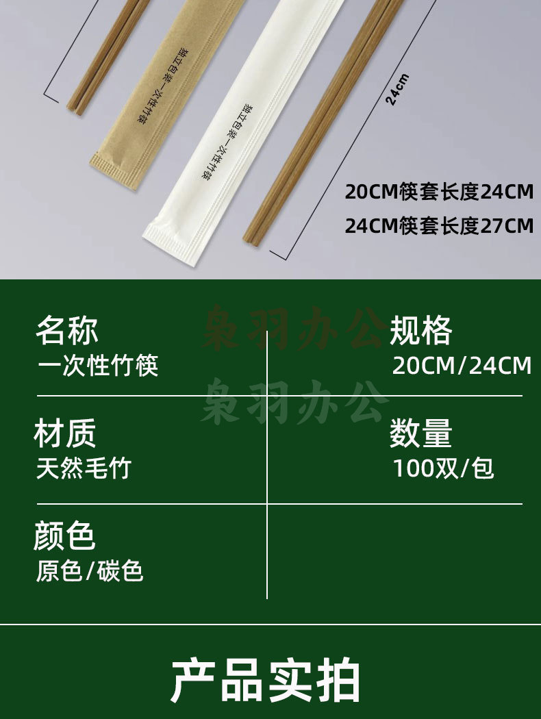 一次性筷子独立纸包装商用外卖家用高档学校单位食堂连体卫生竹筷牛皮纸无字原色连体竹筷100双20CM