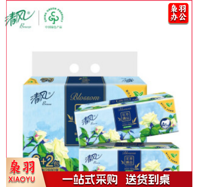 清风抽纸 纸巾 清风花萃 4层90抽*8包软抽(真M码)(天然无香)