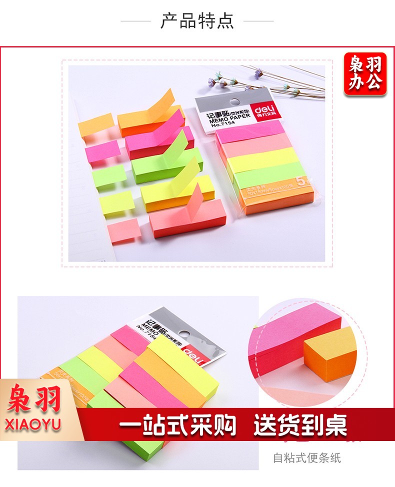 得力7154记事贴(混)50*15mm(包) 12包/盒