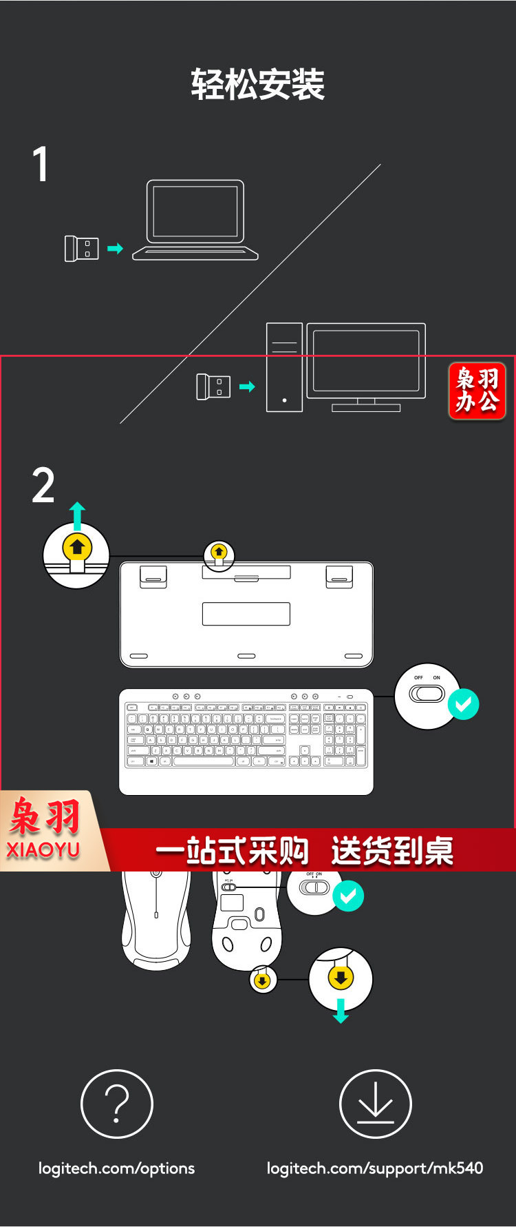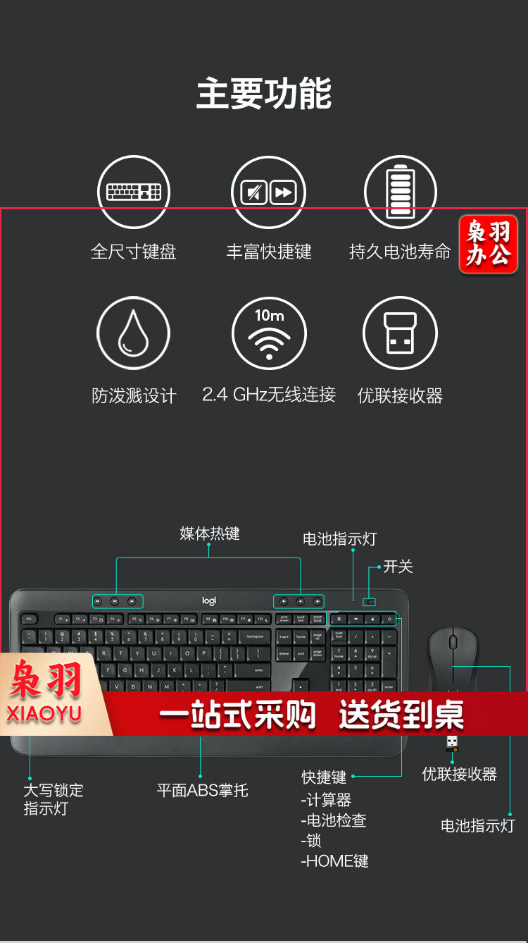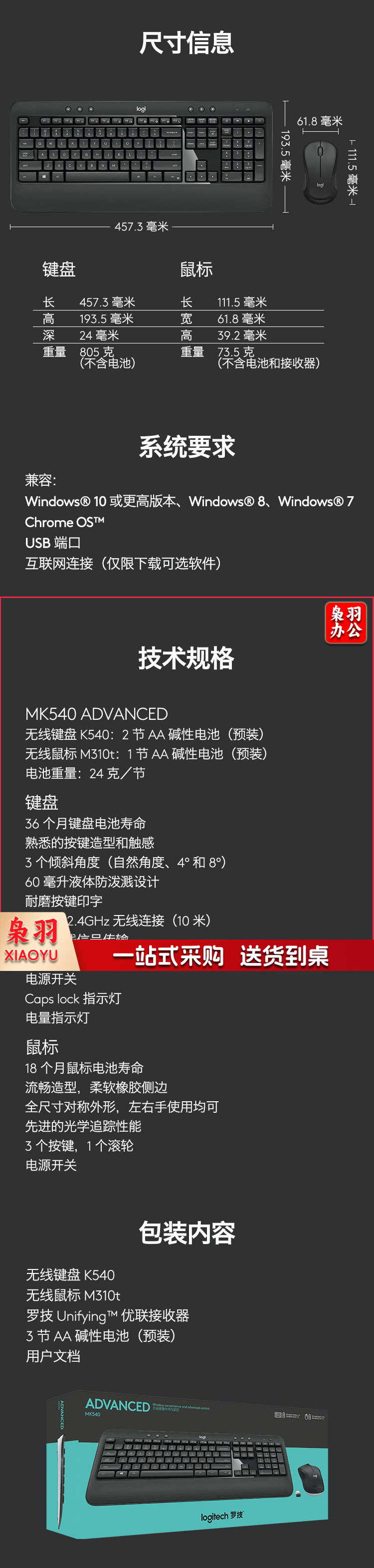罗技(Logitech)MK540 键鼠套装 无线键鼠套装 办公键鼠套装 全尺寸 黑色 自营 带无线2.4G接收器