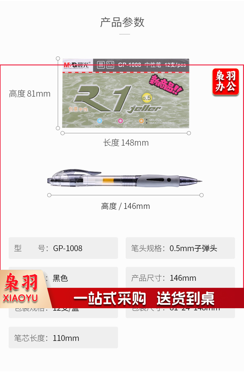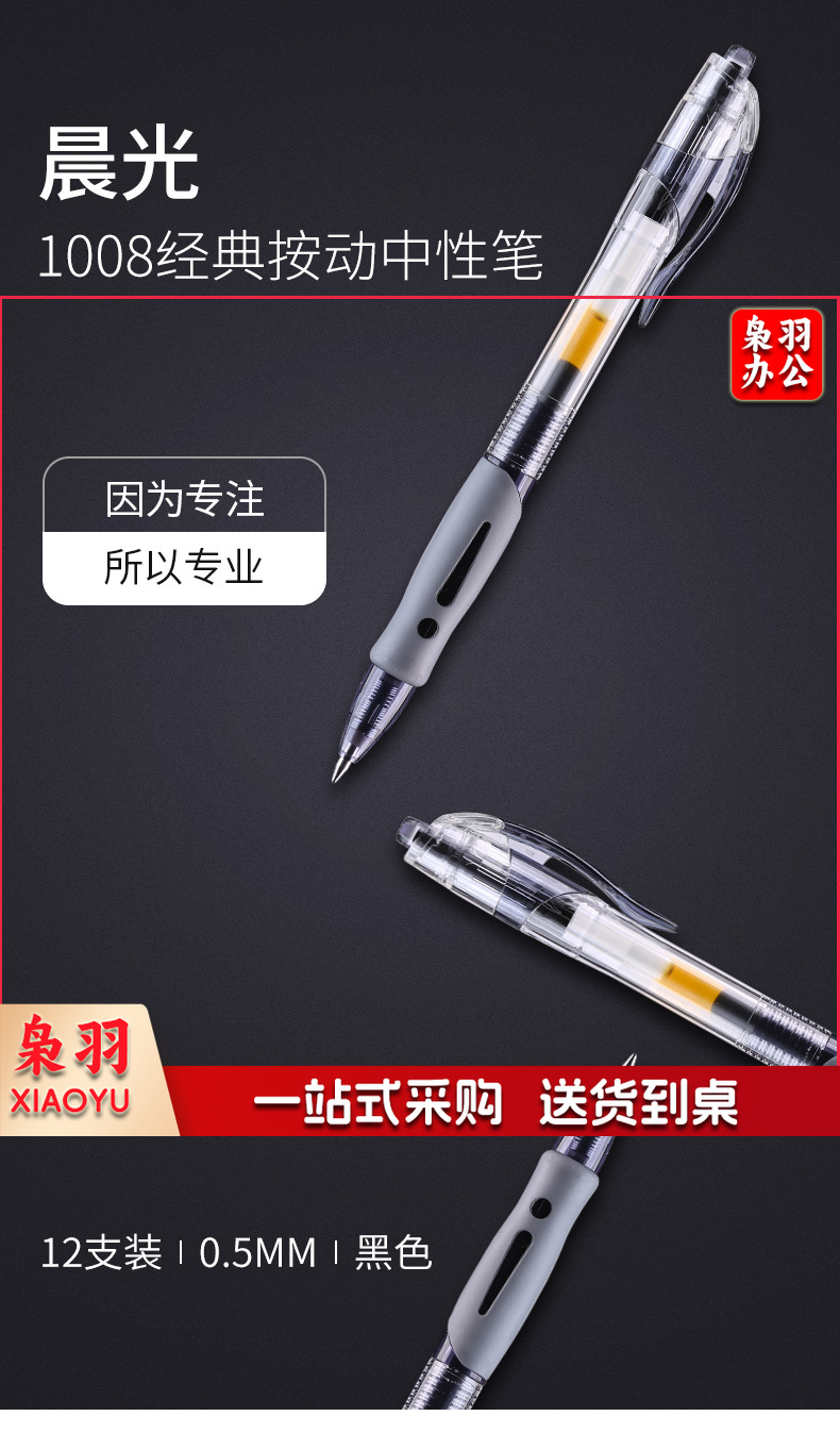 晨光(M&G)文具 12支/盒 GP1008中性笔0.5mm子弹头签字笔按动碳素笔办公用水笔黑色