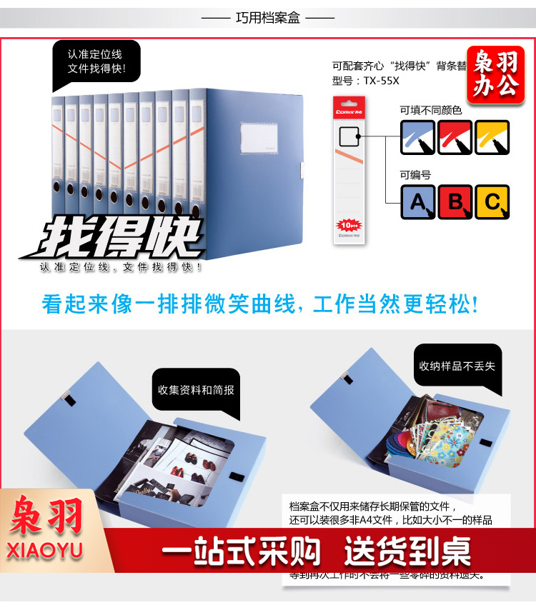 齐心(COMIX) 10个/件 A1249档案盒55mmA4绯蓝