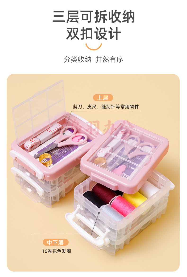 30件套针线包套装家用针线盒缝补便携大号三层手工针线收纳盒高档