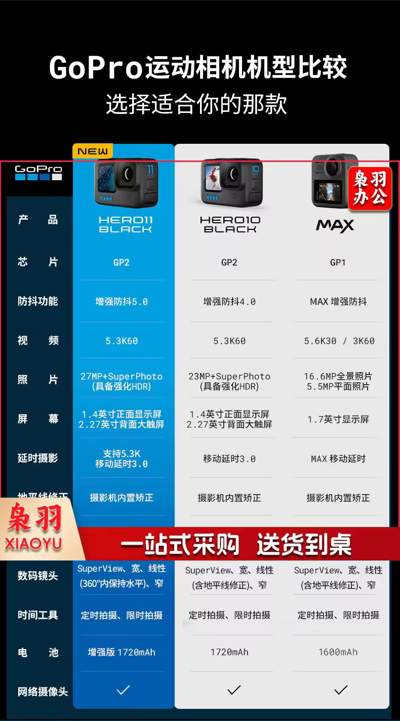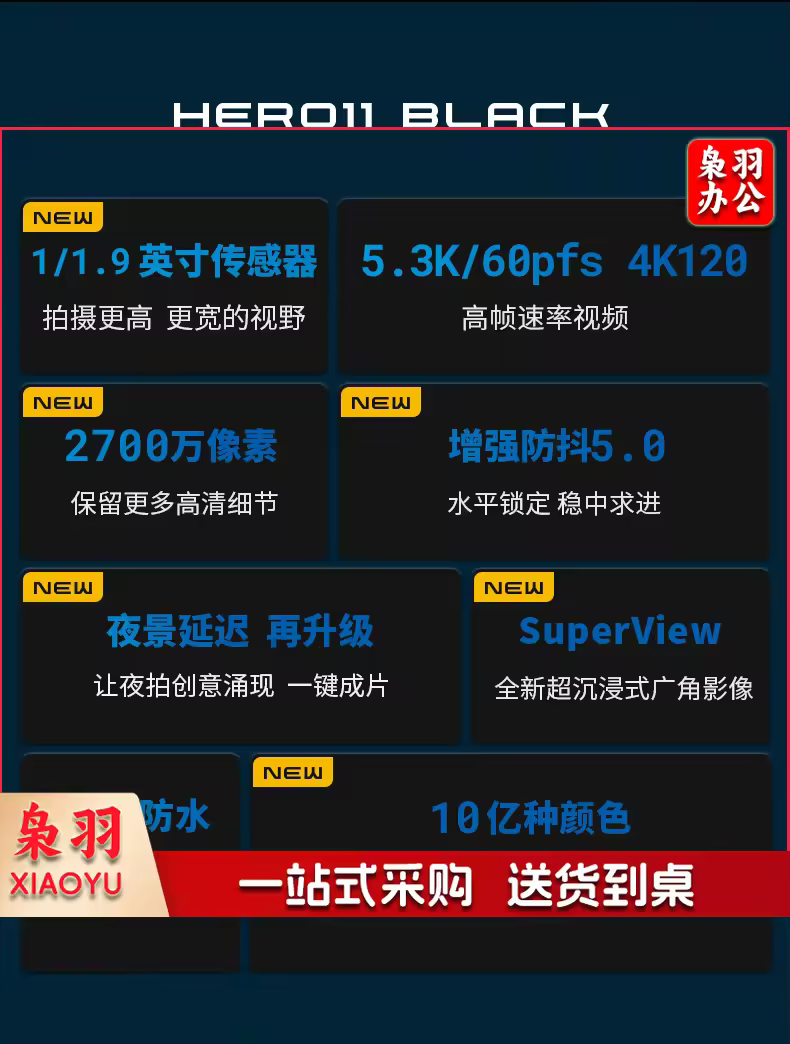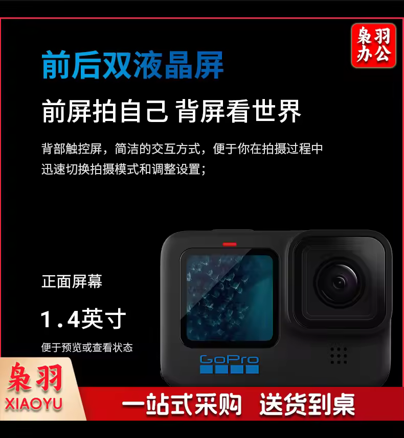商品名称:GoProHERO11 商品编号:100035773333 商品毛重:460.00g 商品产地:中国大陆 适用场景:骑行,滑雪,速降 分辨率:4K+ 功能:裸机防水,语音控制,触屏操作,视频直播,电子防抖,GPS定位,延时摄影