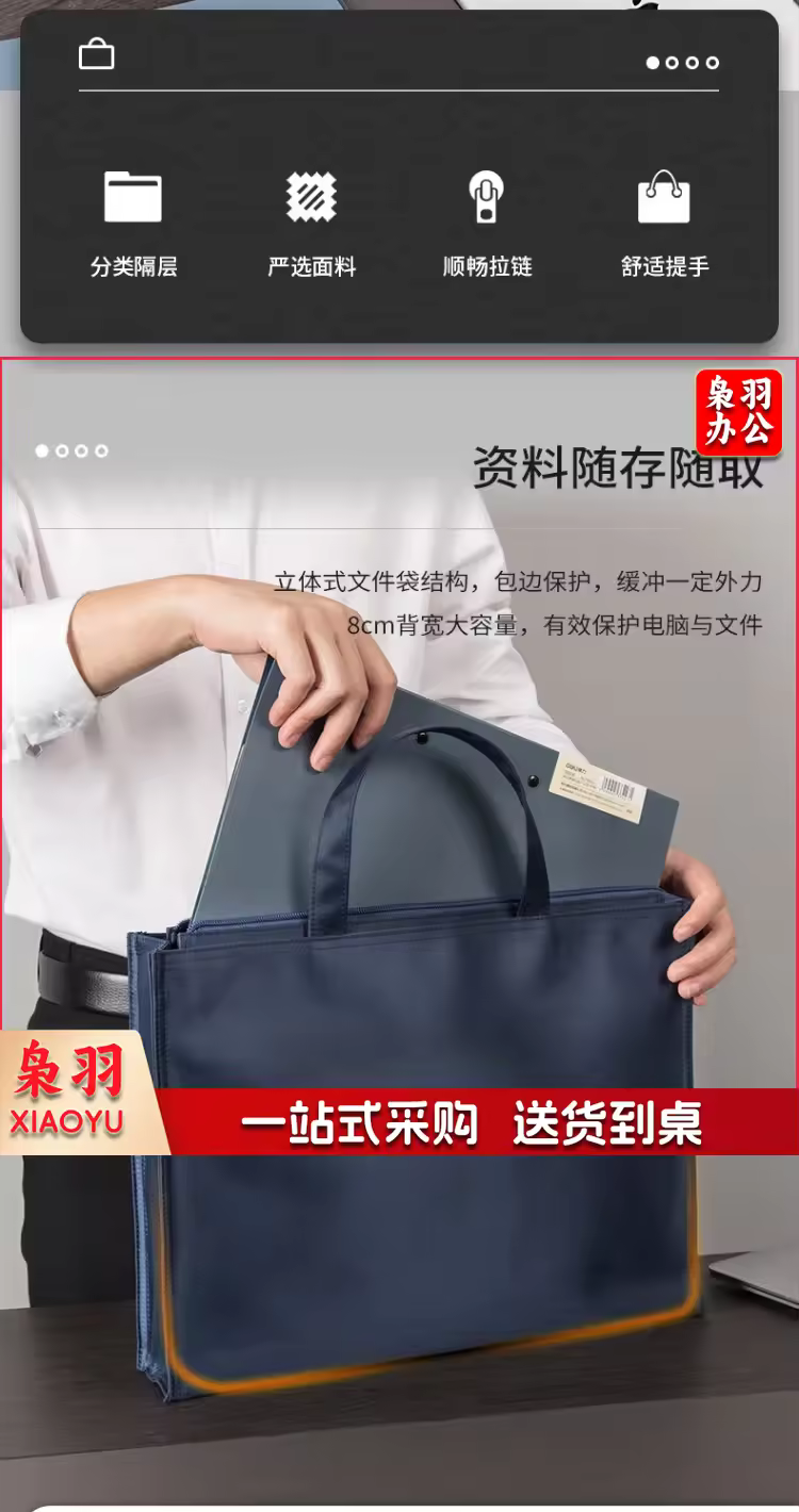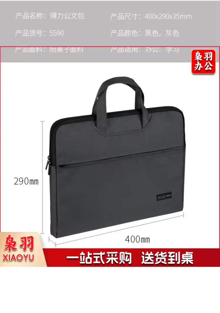 得力(deli) 帆布手提袋 文件袋 档案袋 公文包 办公用公文袋A4 63753 黑色