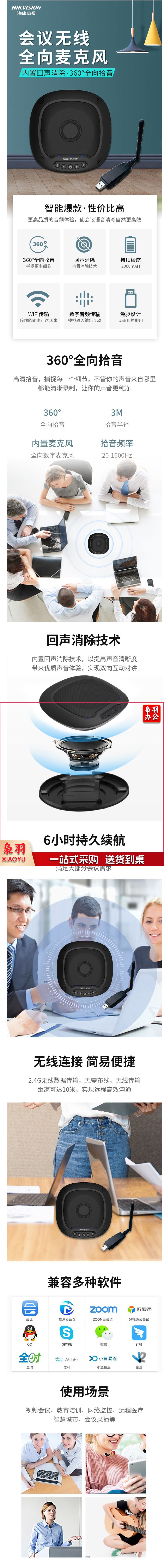 海康威视 蓝牙全向麦克风USB免驱远程网络视频电话会议拾音器扬声器 DS-VS1
