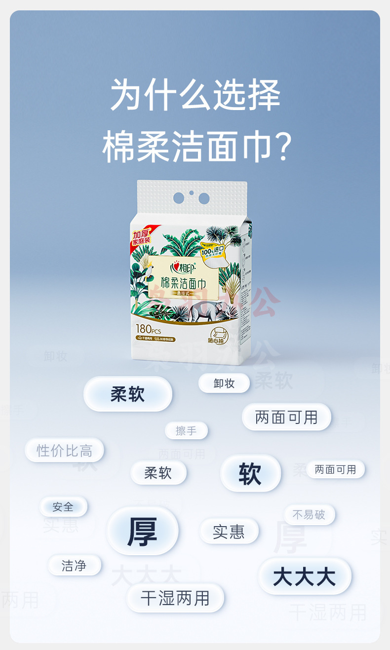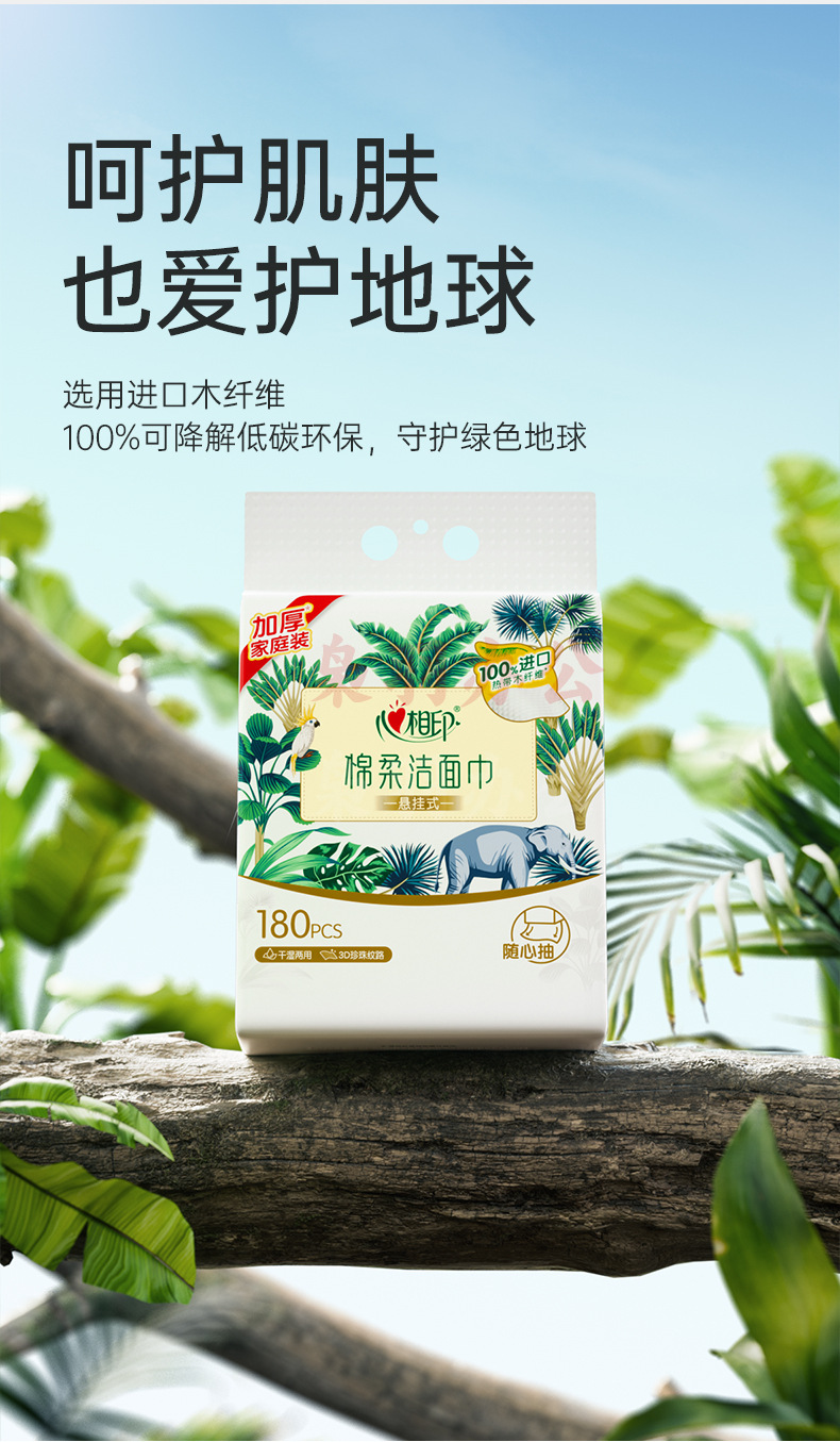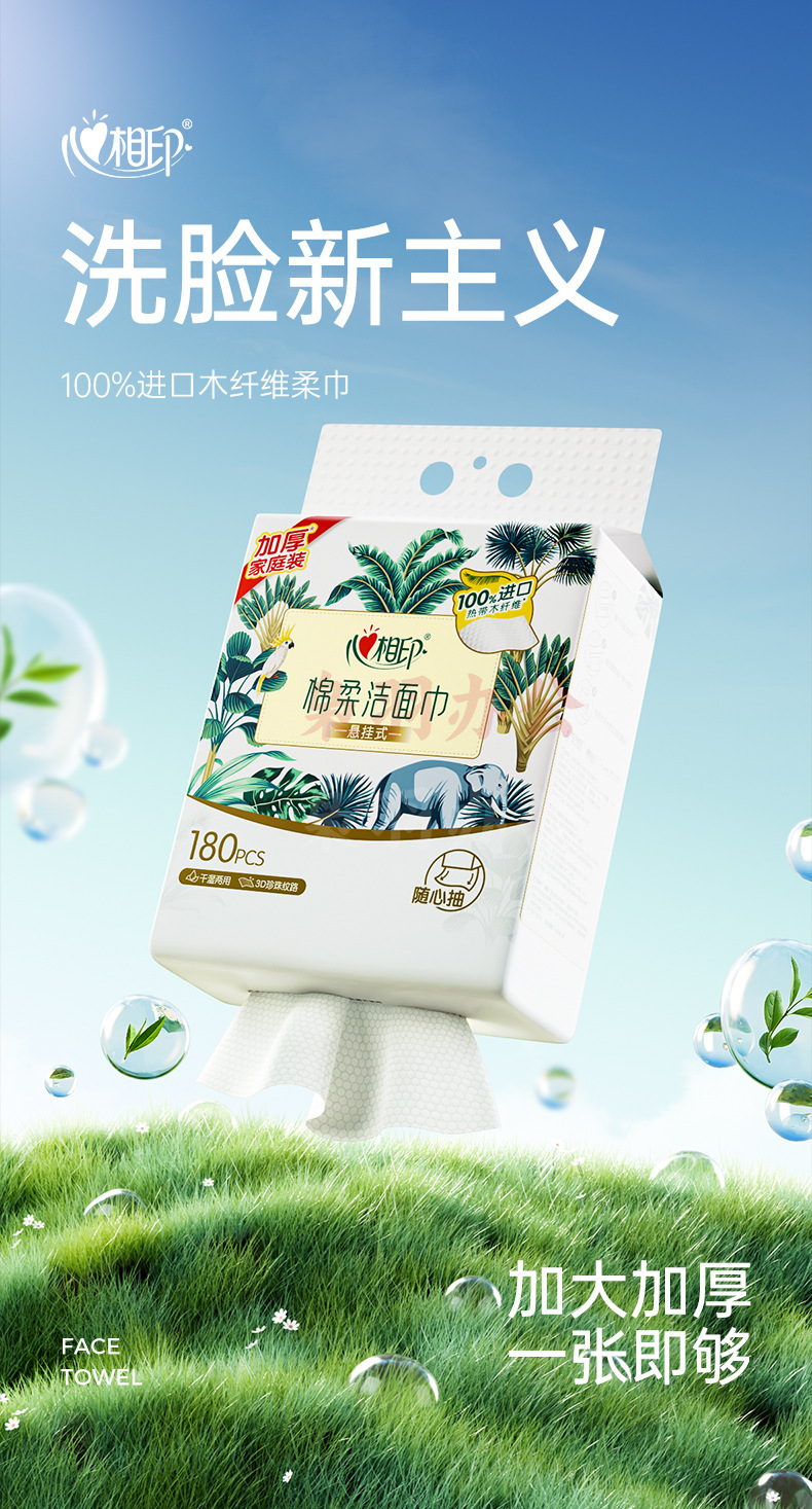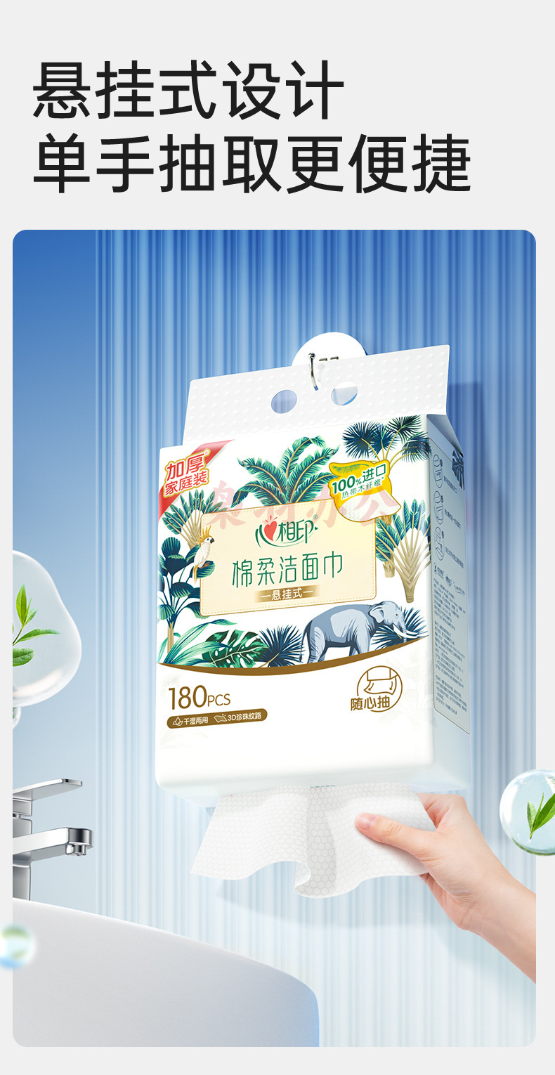心相印悬挂式洗脸巾180抽一次性棉柔巾干湿两用洁面巾