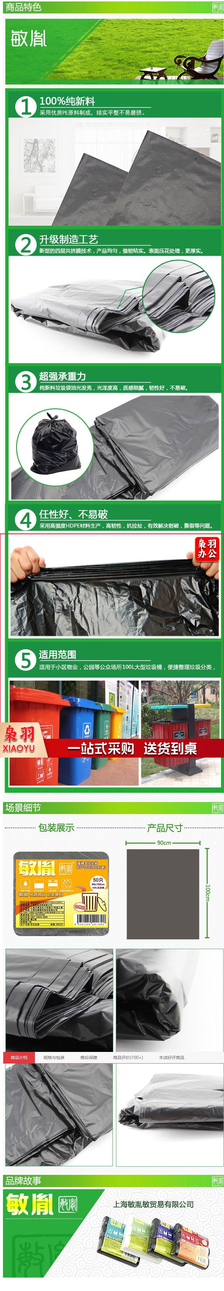 90*100cm 强韧型黑色垃圾袋 50只/包厨房工业用 15包/箱