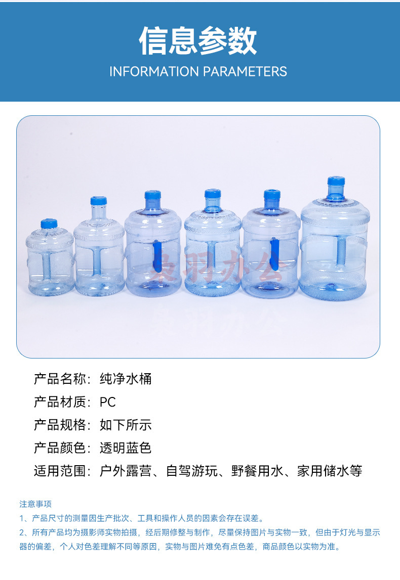 食品用PC纯净水桶加厚塑料饮水机桶户外便携式纯净水桶手提塑料桶尺寸齐全19L PC水桶