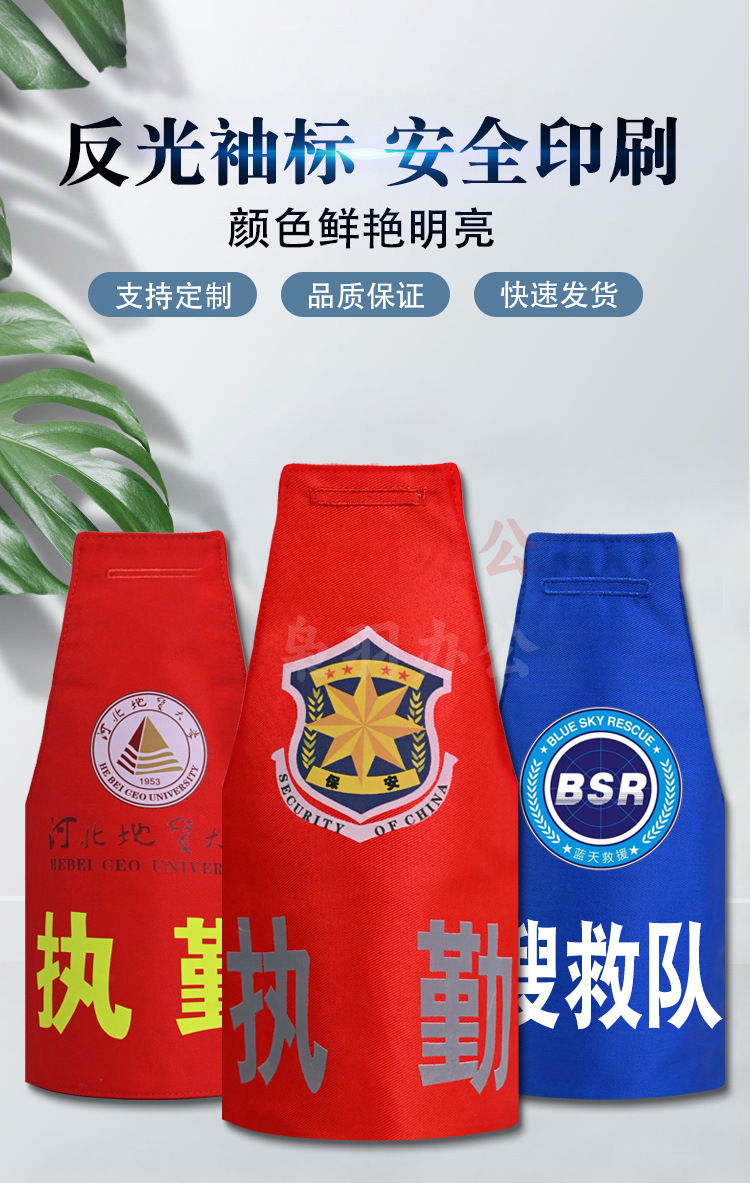 定 做护林防火袖章袖标做安全员反光袖标三角连肩袖执勤保安袖套(双拼款logo+【普通字】加厚双层棉布