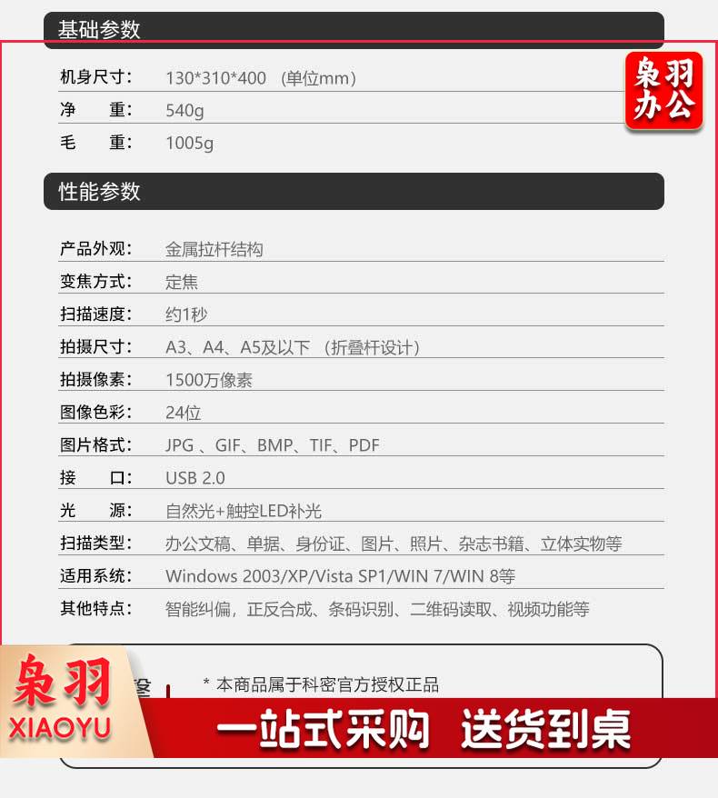 科密(comet) B1315 高拍仪 1500万像素统信麒麟国产系统二次开发